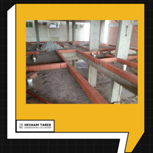 توزيع الأحمال: يتم تشوين الطوب والأسمنت والرمل حول الكمرات والأعمدة فقط. إياك والتشوين في منتصف “البواكي” (Slabs) لتجنب حدوث ترخيم (Deflection) أو إجهادات غير محسوبة للسقف.