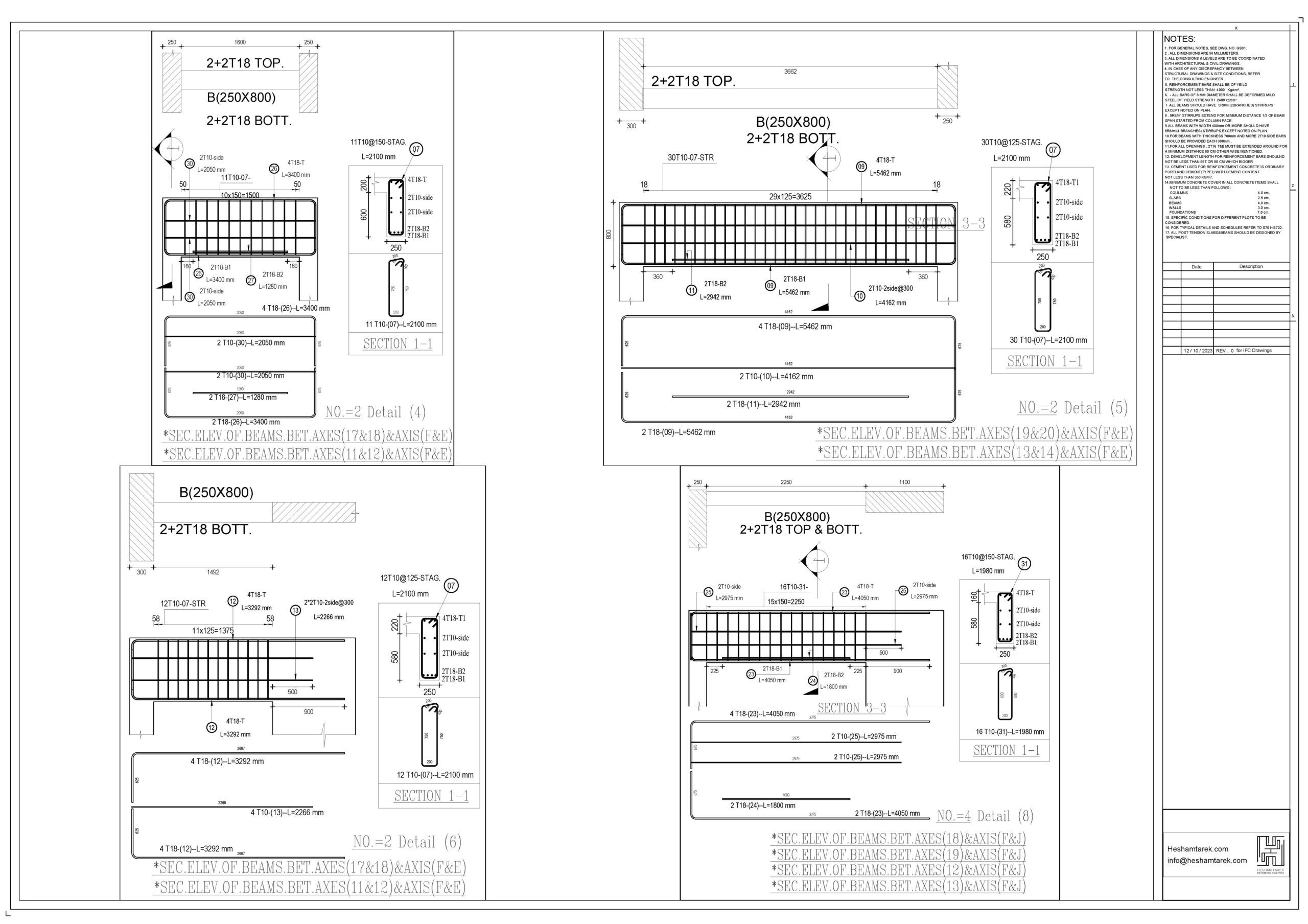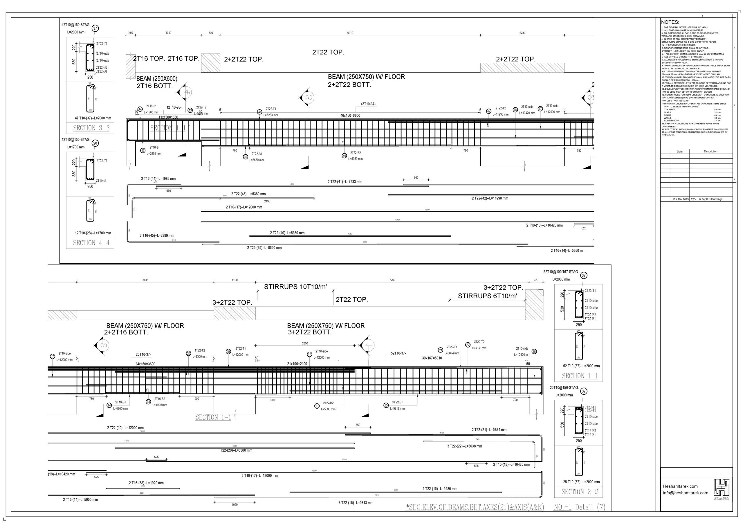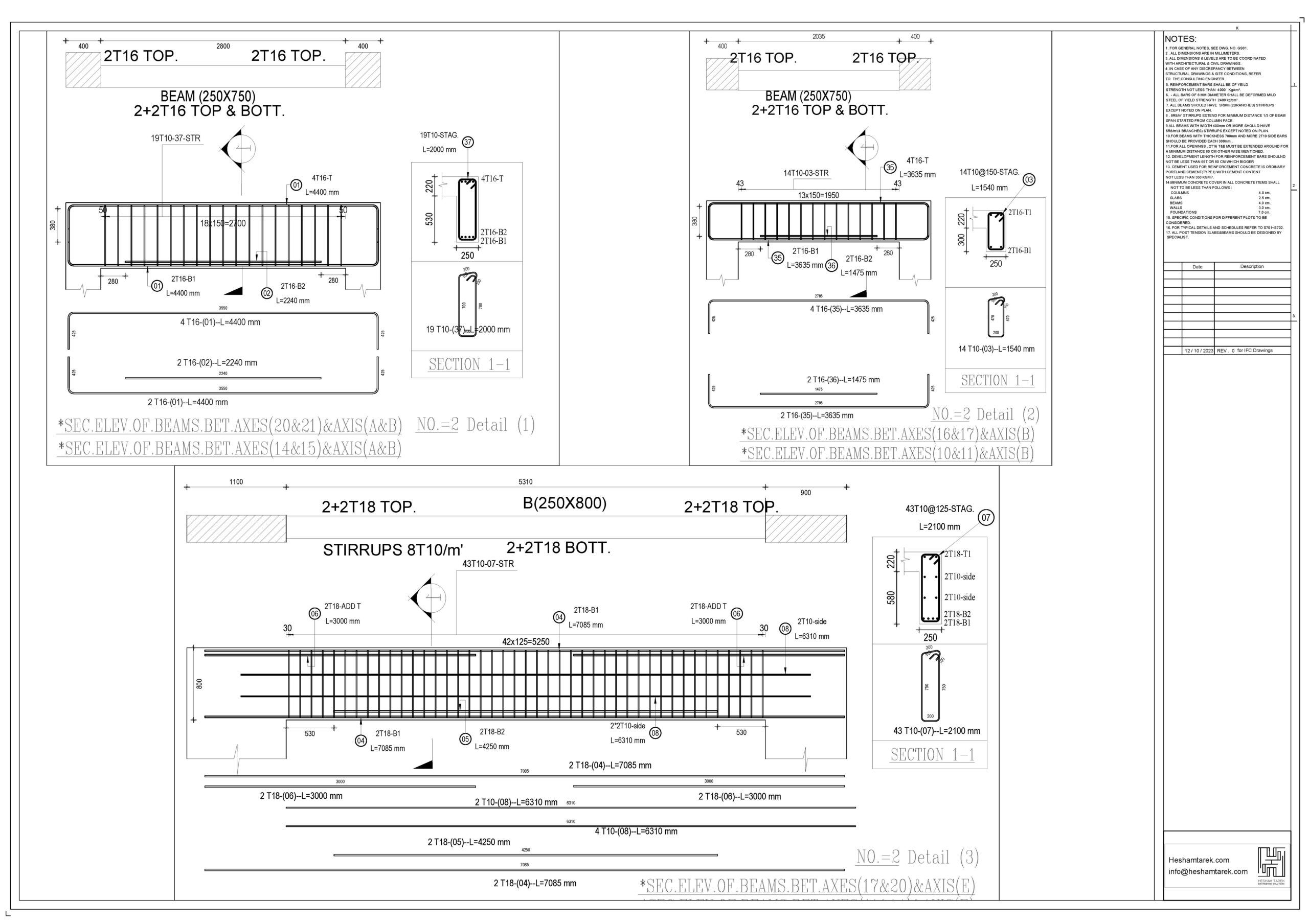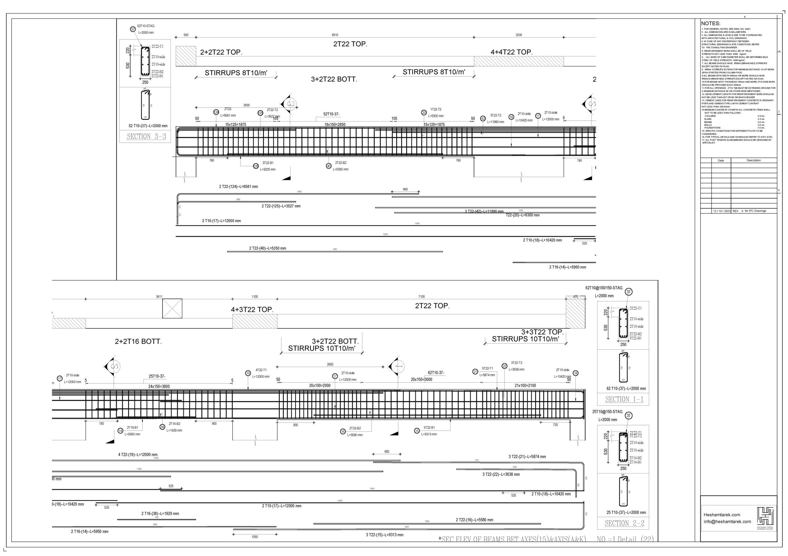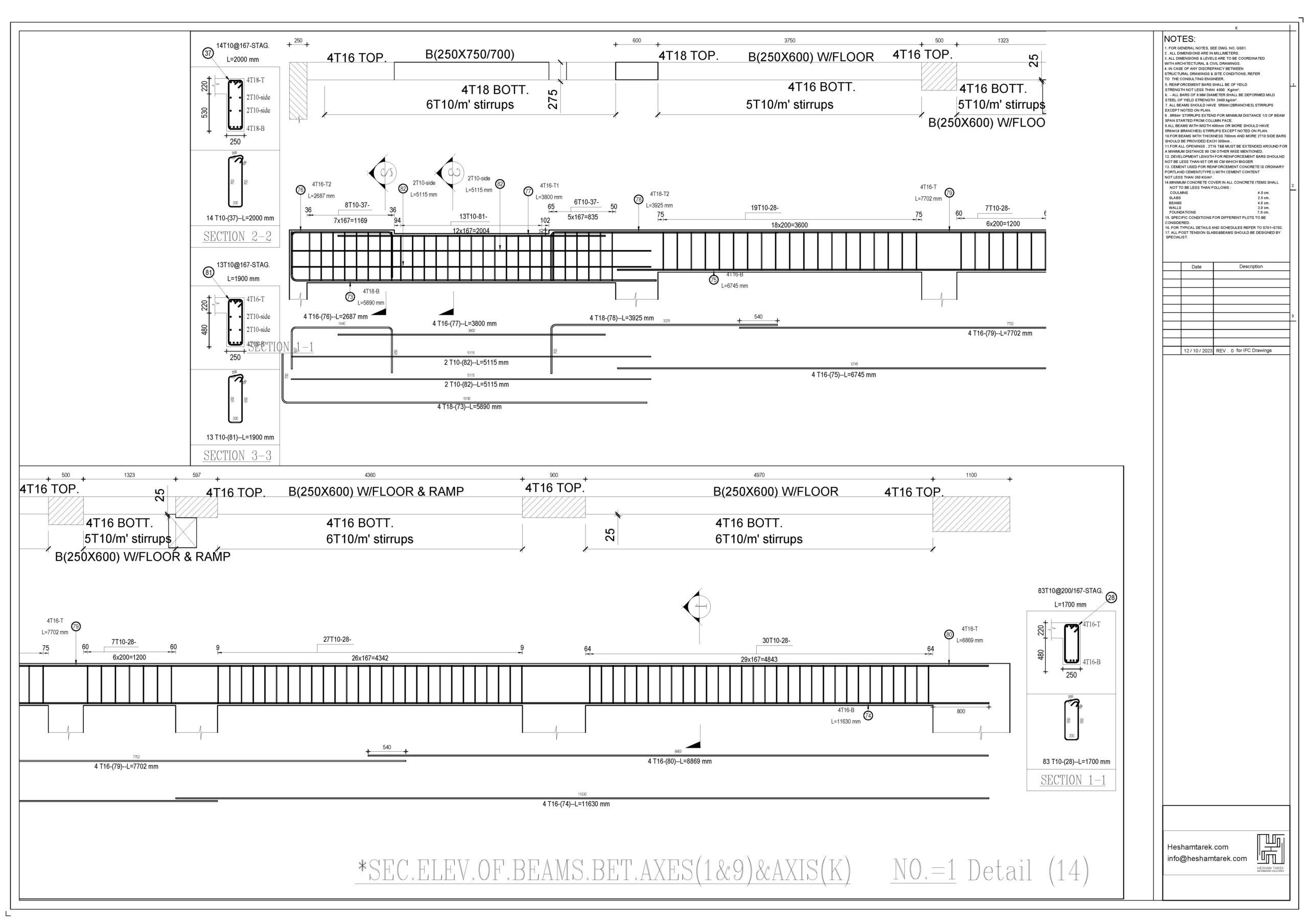 – عمل حصر للكمرات مع توضيح أطوال و سقوط الكمرات و شرح كيفية حصر أكثر من قطاع