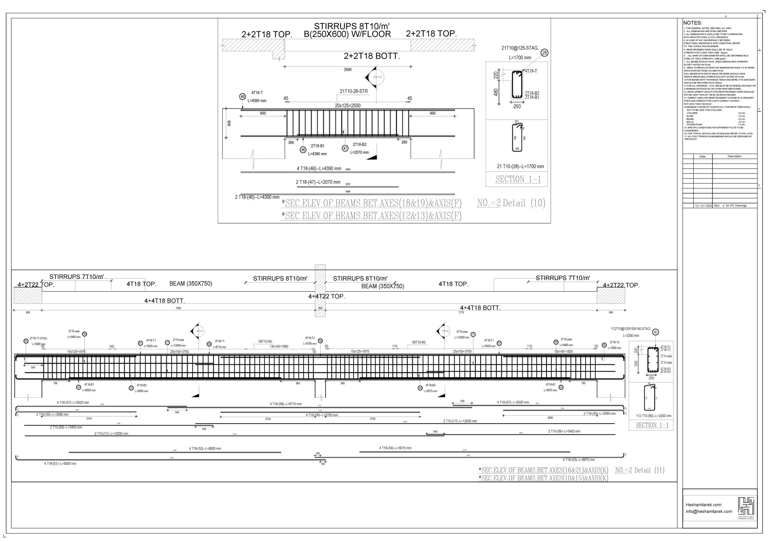 – شرح لكيفية تفريد حديد التسليح للكمرات متغيرة العرض و الكمرات متغيرة العمق