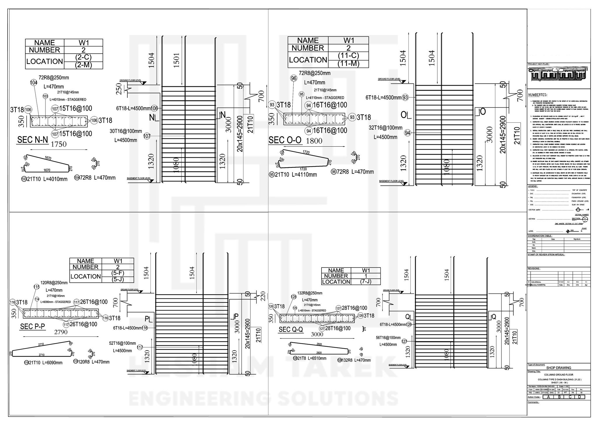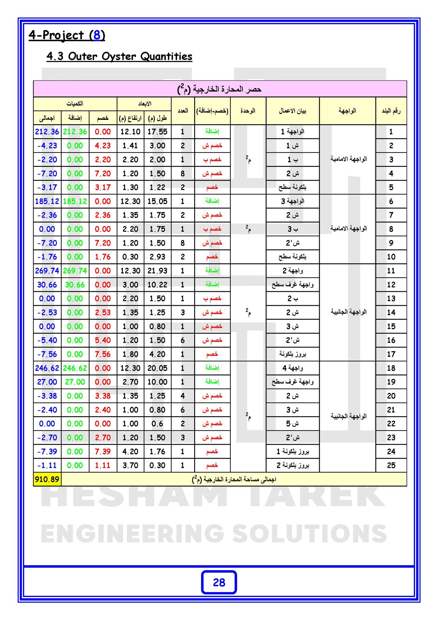 – عمل حصر لأعمال عزل القواعد و السملات و رقابي الأعمدة