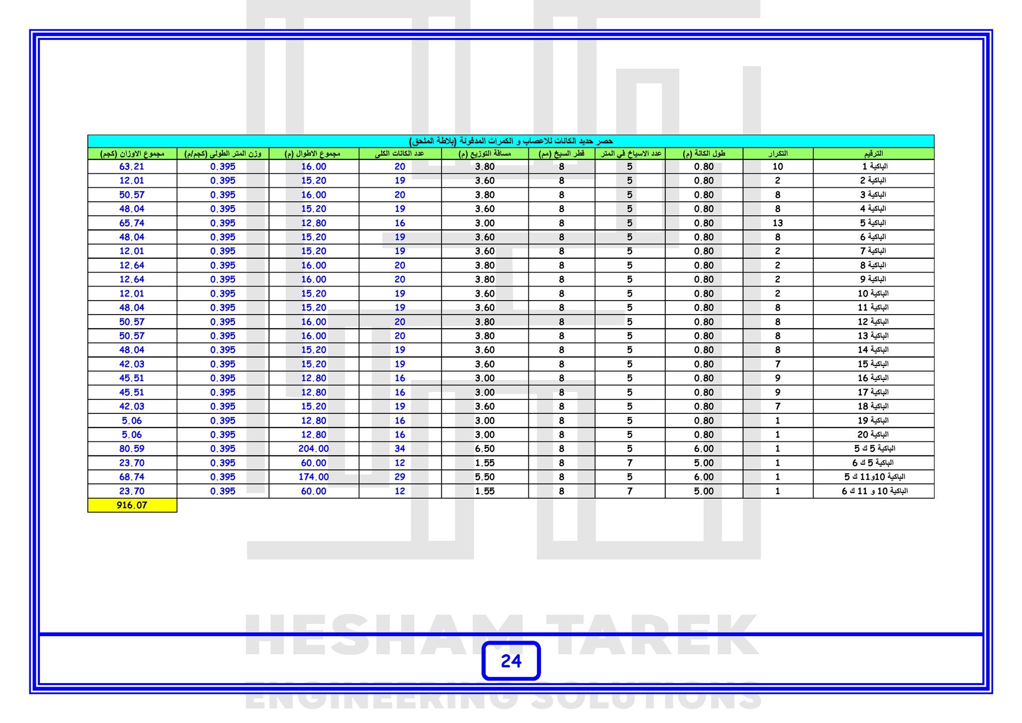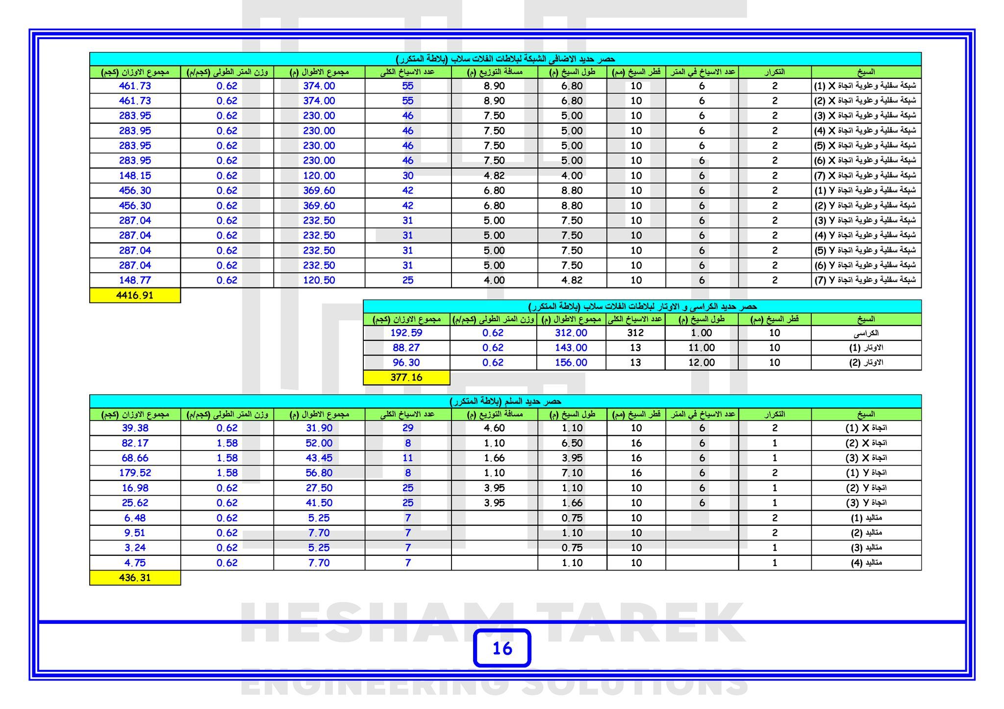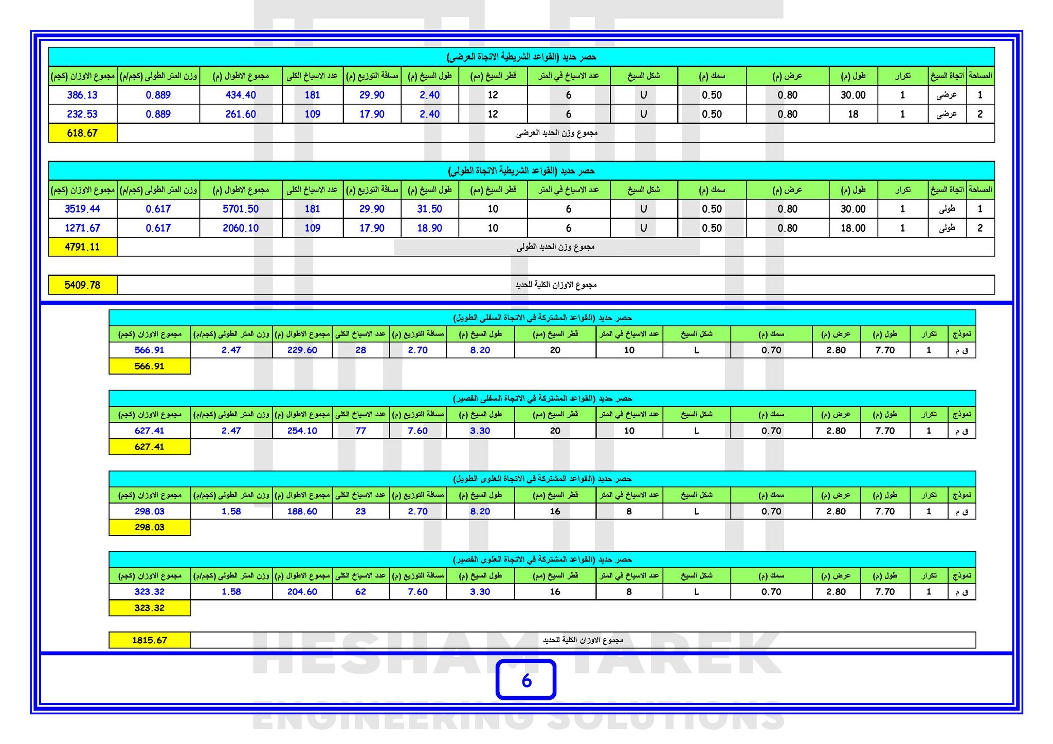 • المحور الرابع : حصر حديد التسليح :