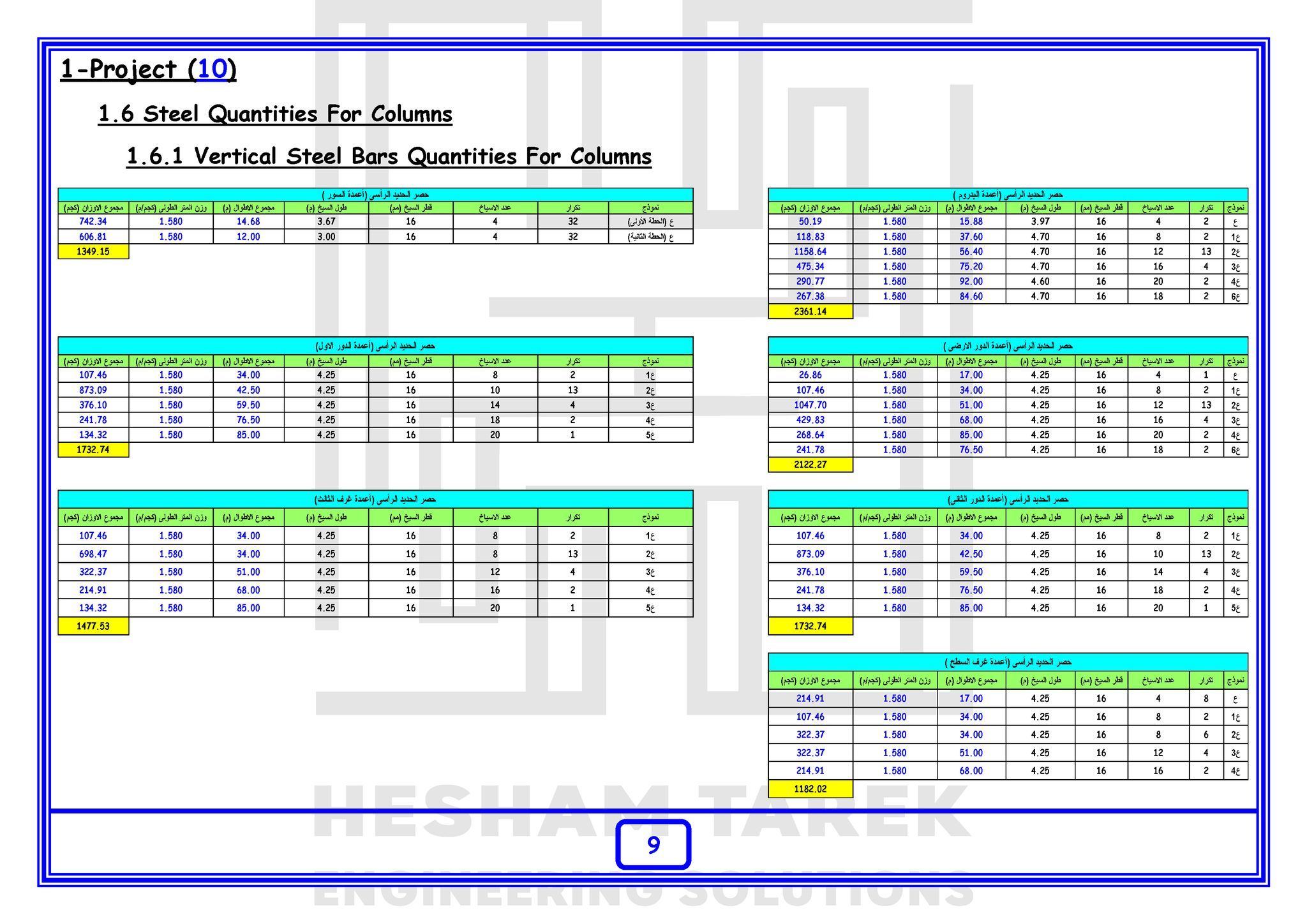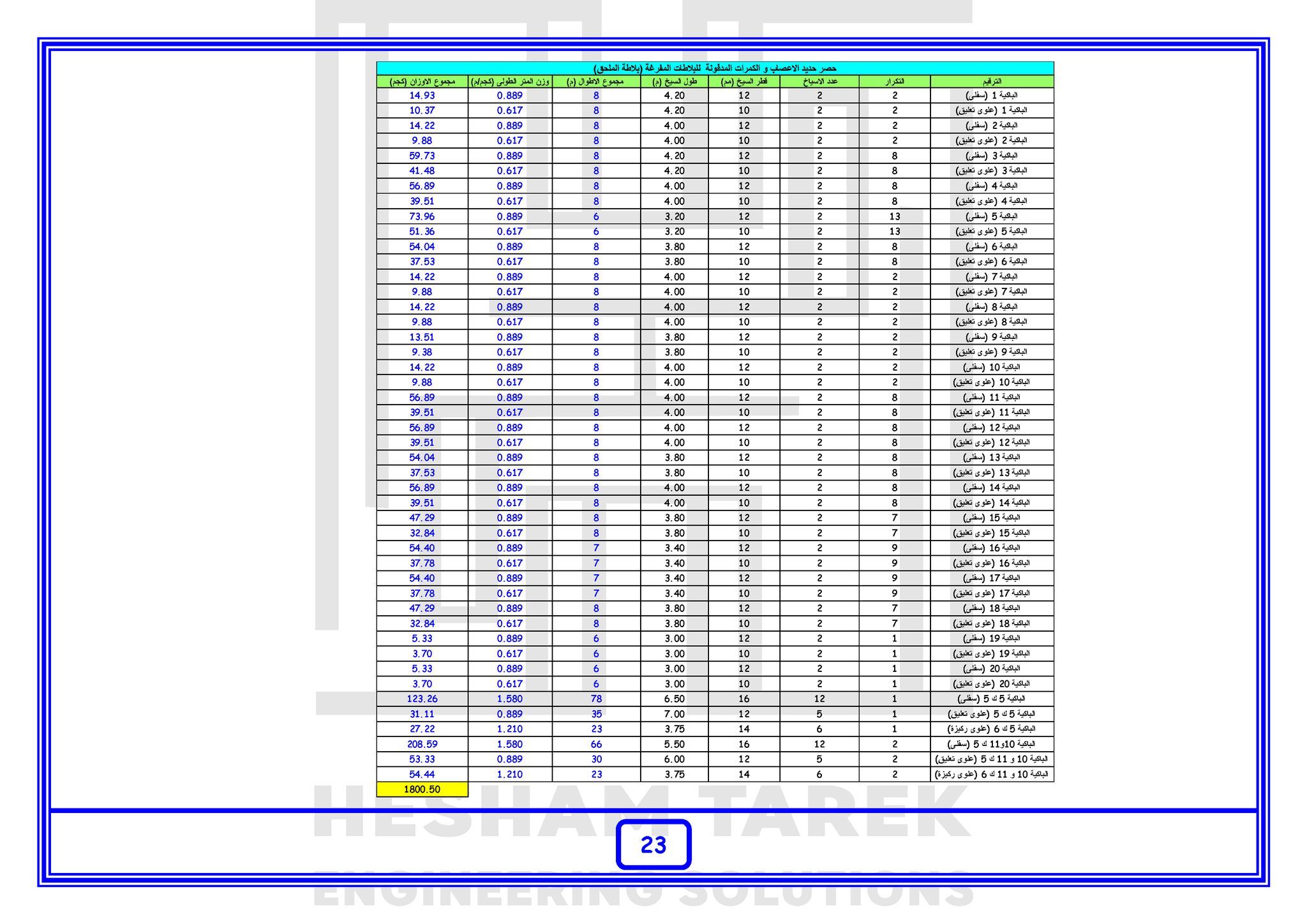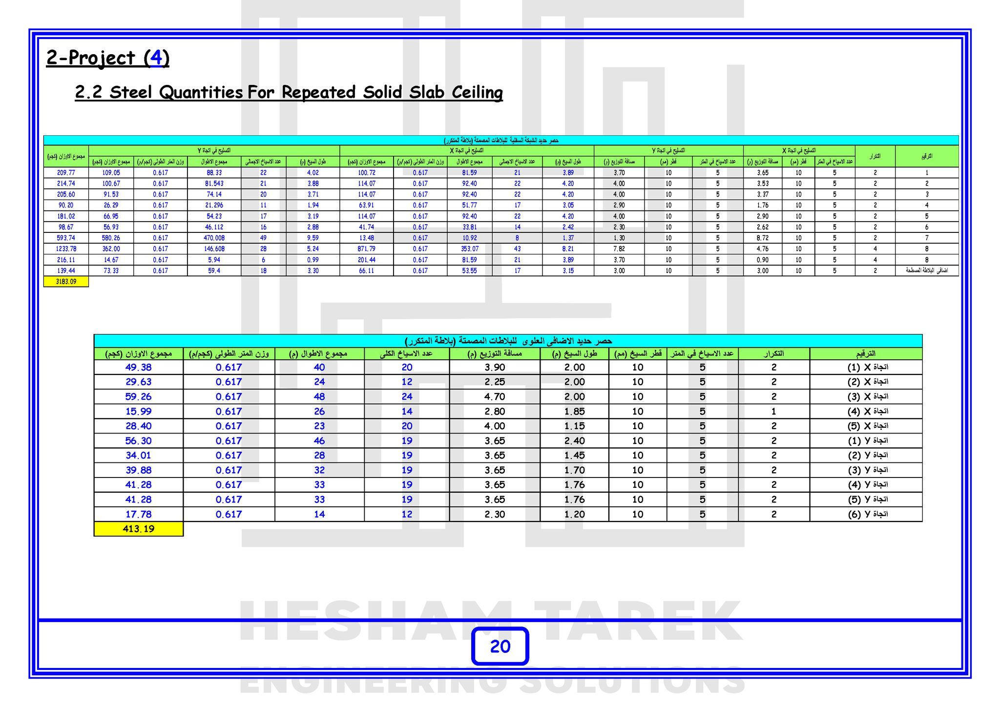 • المحور الرابع : حصر حديد التسليح :