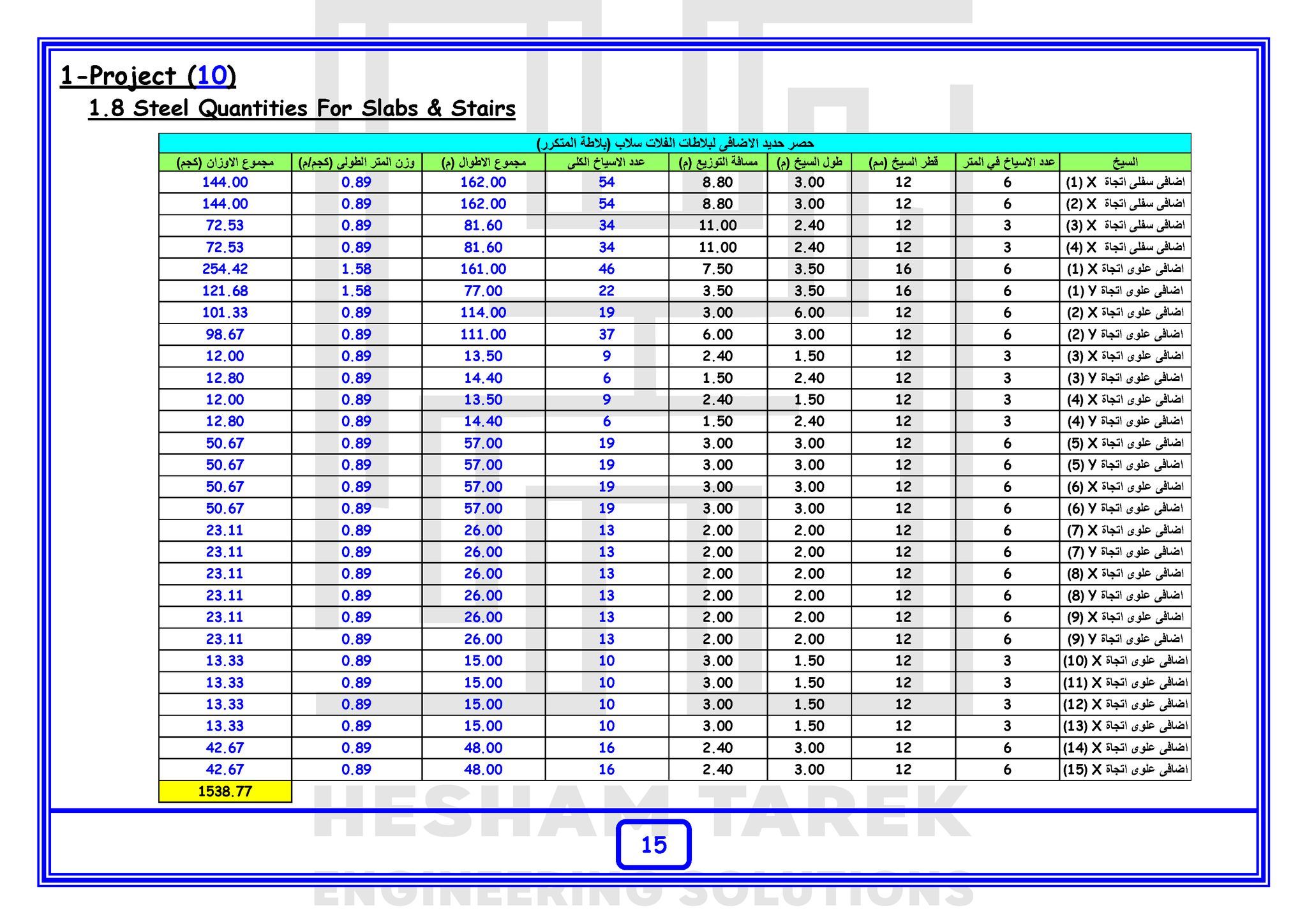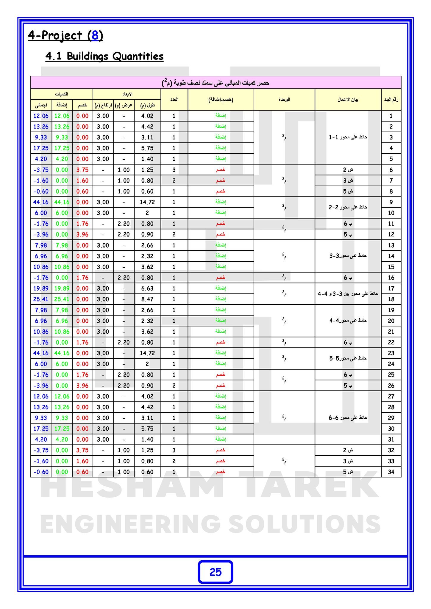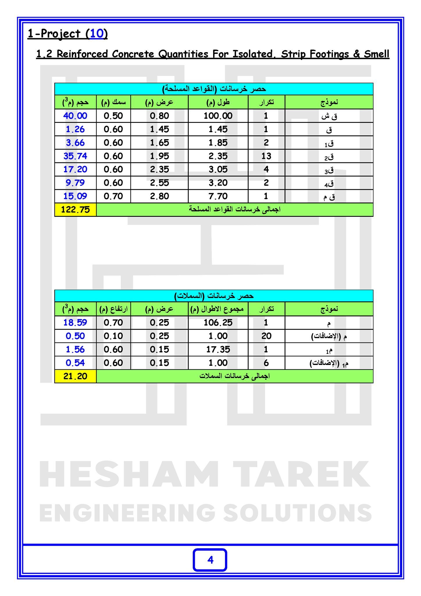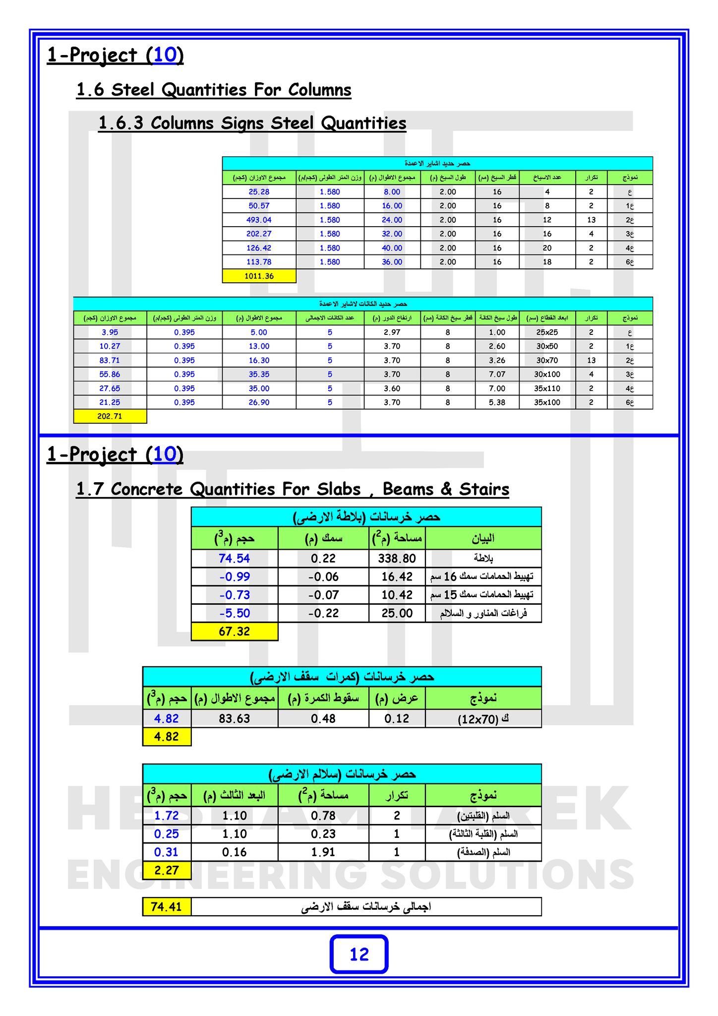 • بالإضافة كمان إننا هنعمل حصر كميات لمشروع بالكامل “خرسانات + حديد تسليح + تشيطبات”