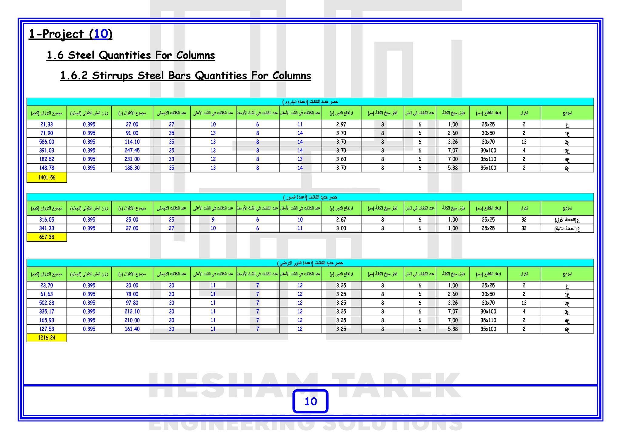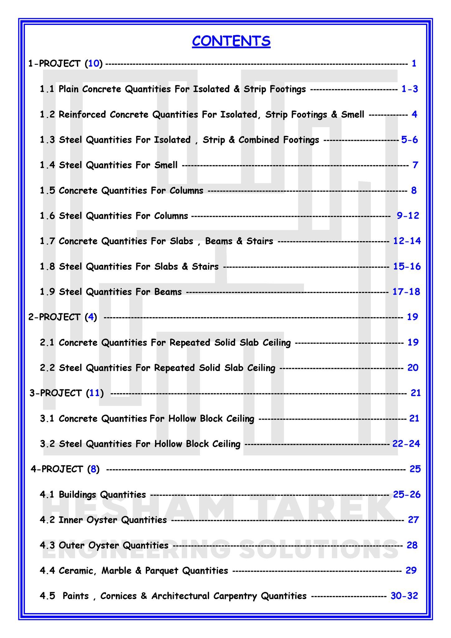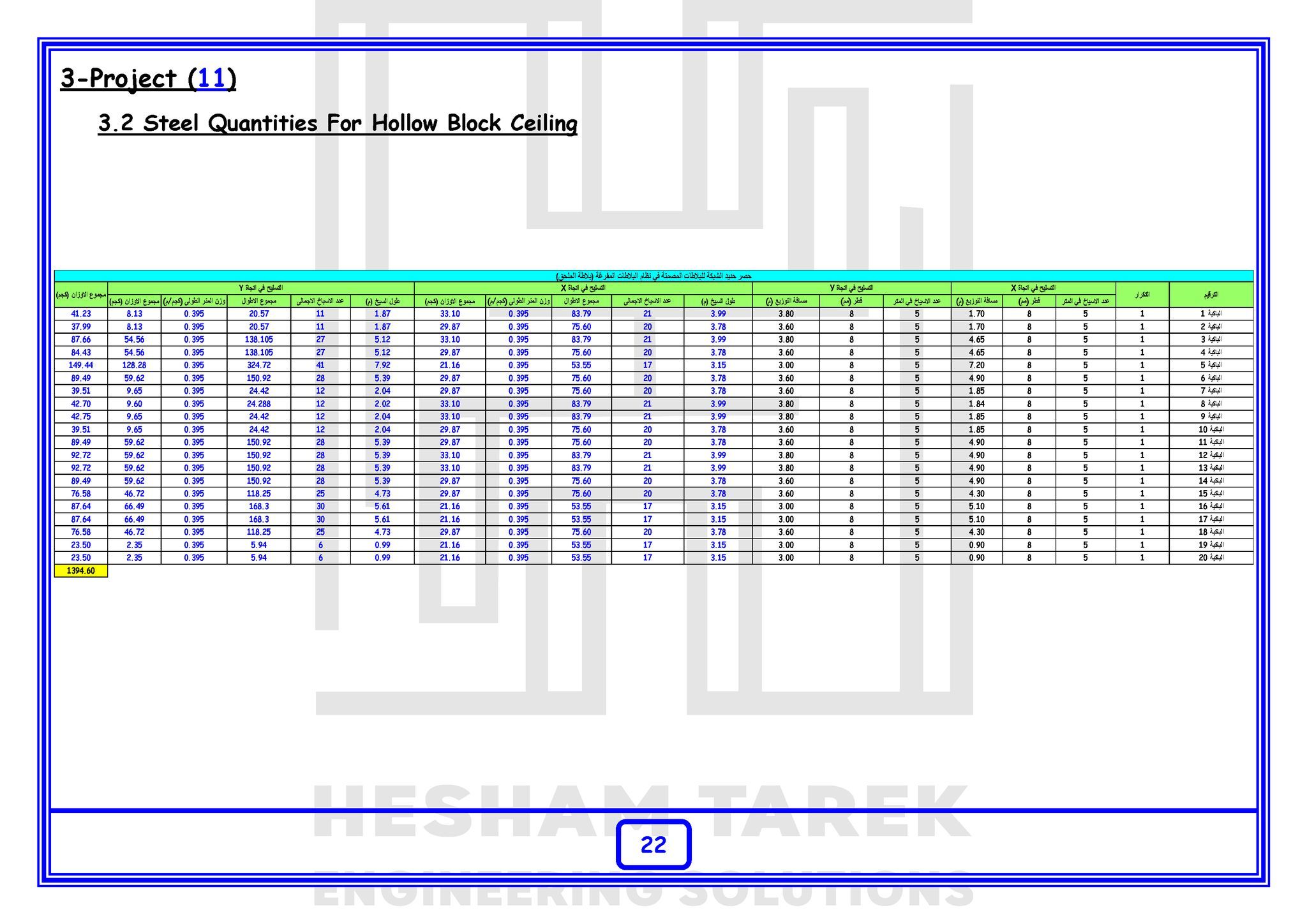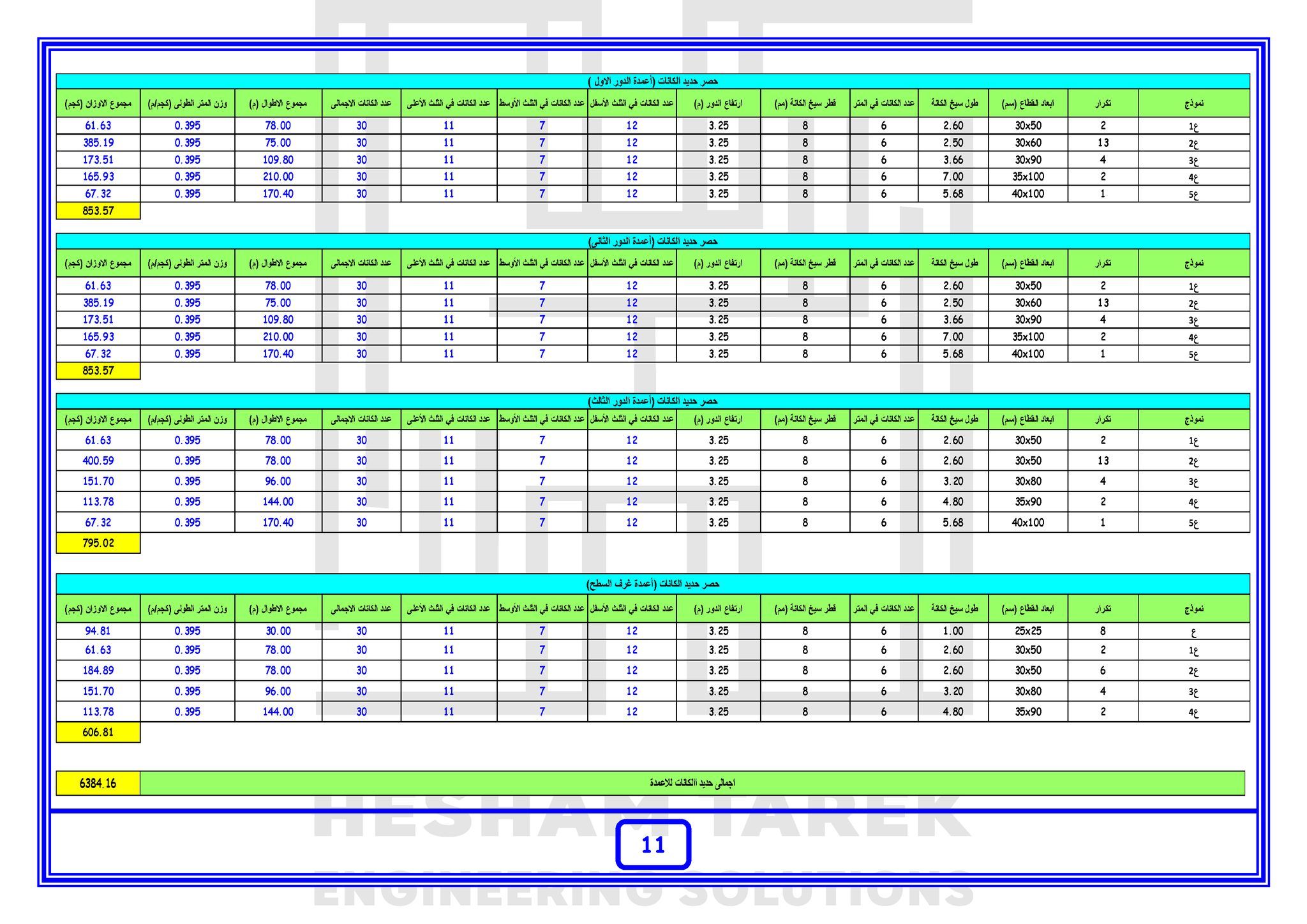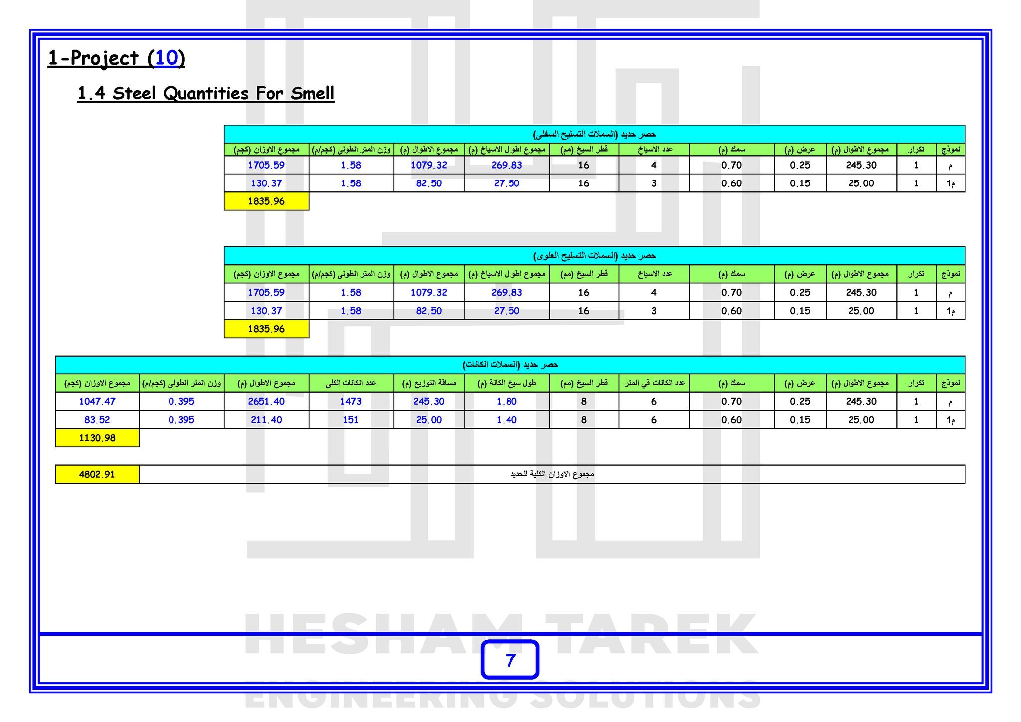 • بالإضافة كمان إننا هنعمل حصر كميات لمشروع بالكامل “خرسانات + حديد تسليح + تشيطبات”