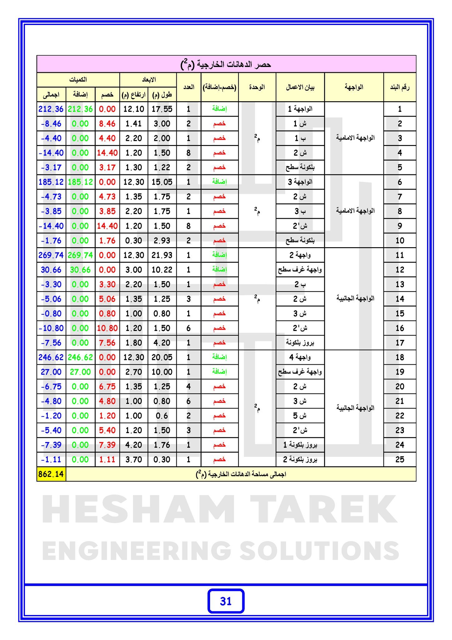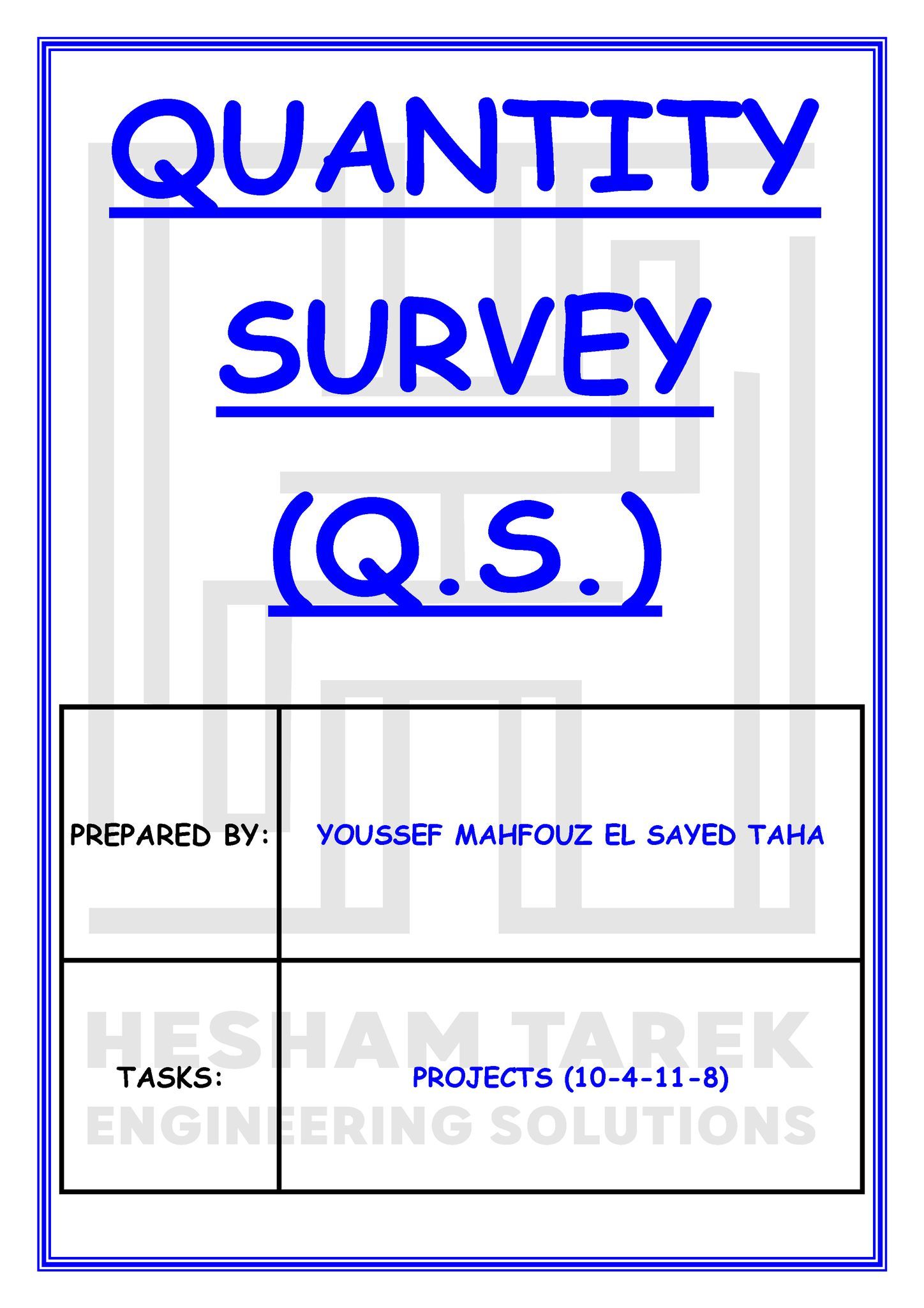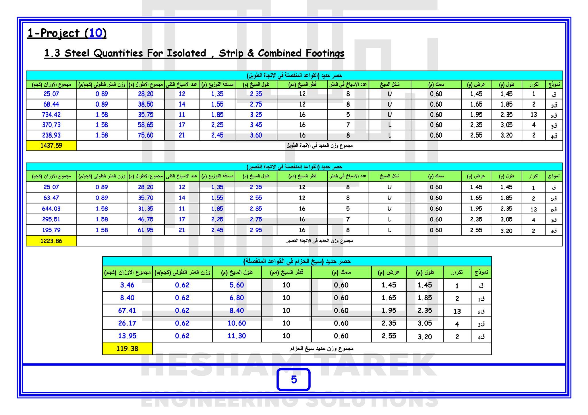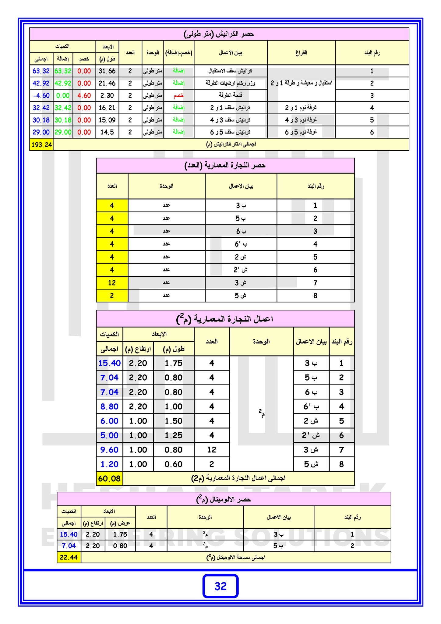 • بالإضافة كمان إننا هنعمل حصر كميات لمشروع بالكامل “خرسانات + حديد تسليح + تشيطبات”