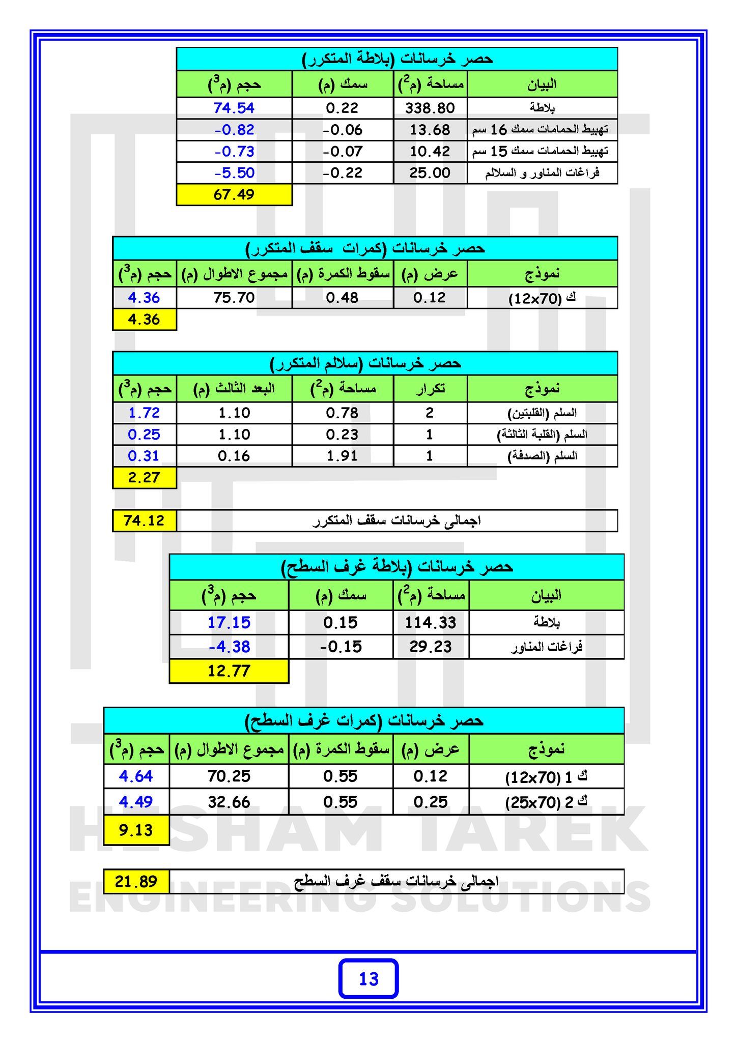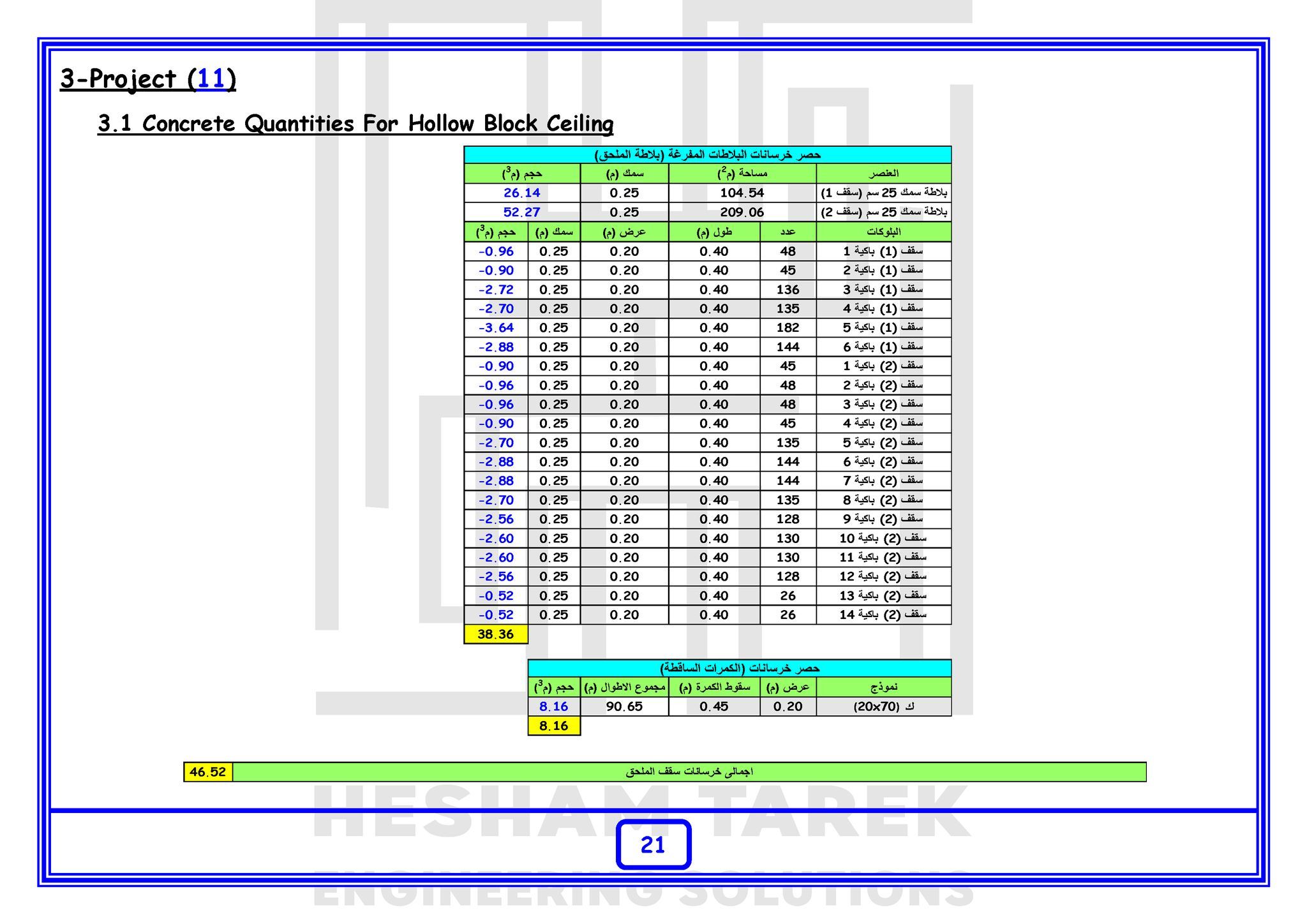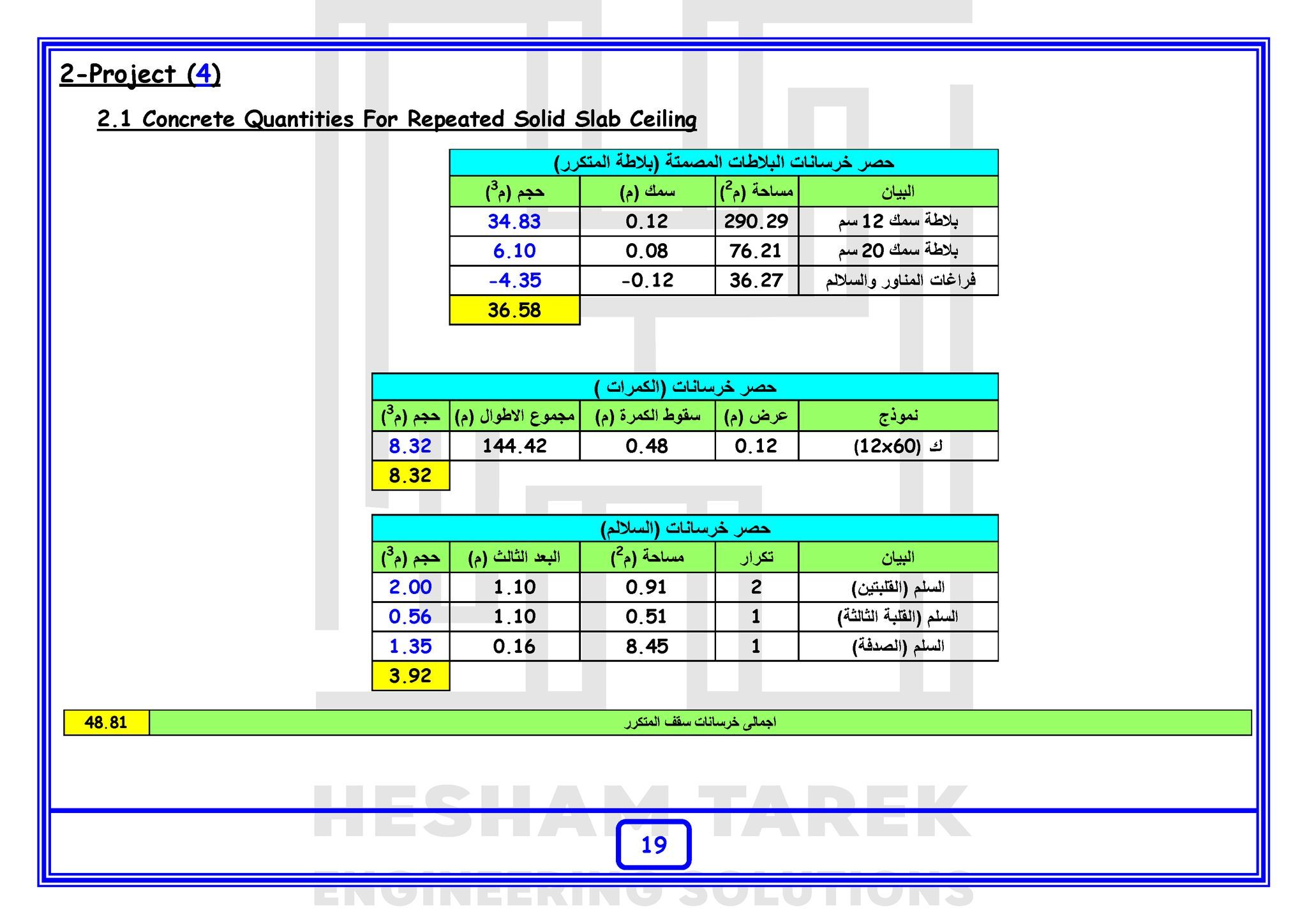 – عمل حصر لسقف سوليد سلاب مع شرح كيفية حصر البلاطات ذات السماكات المختلفة