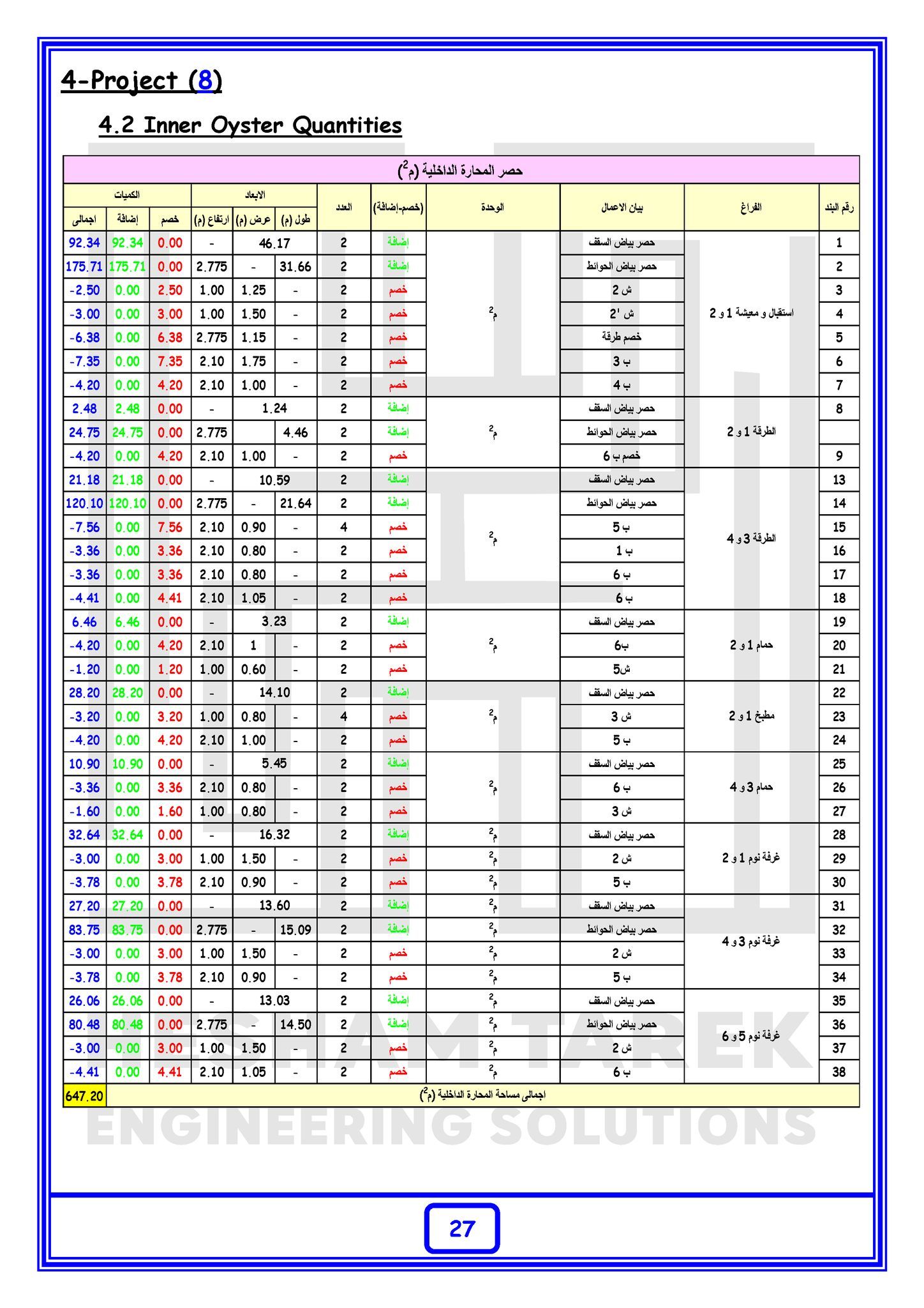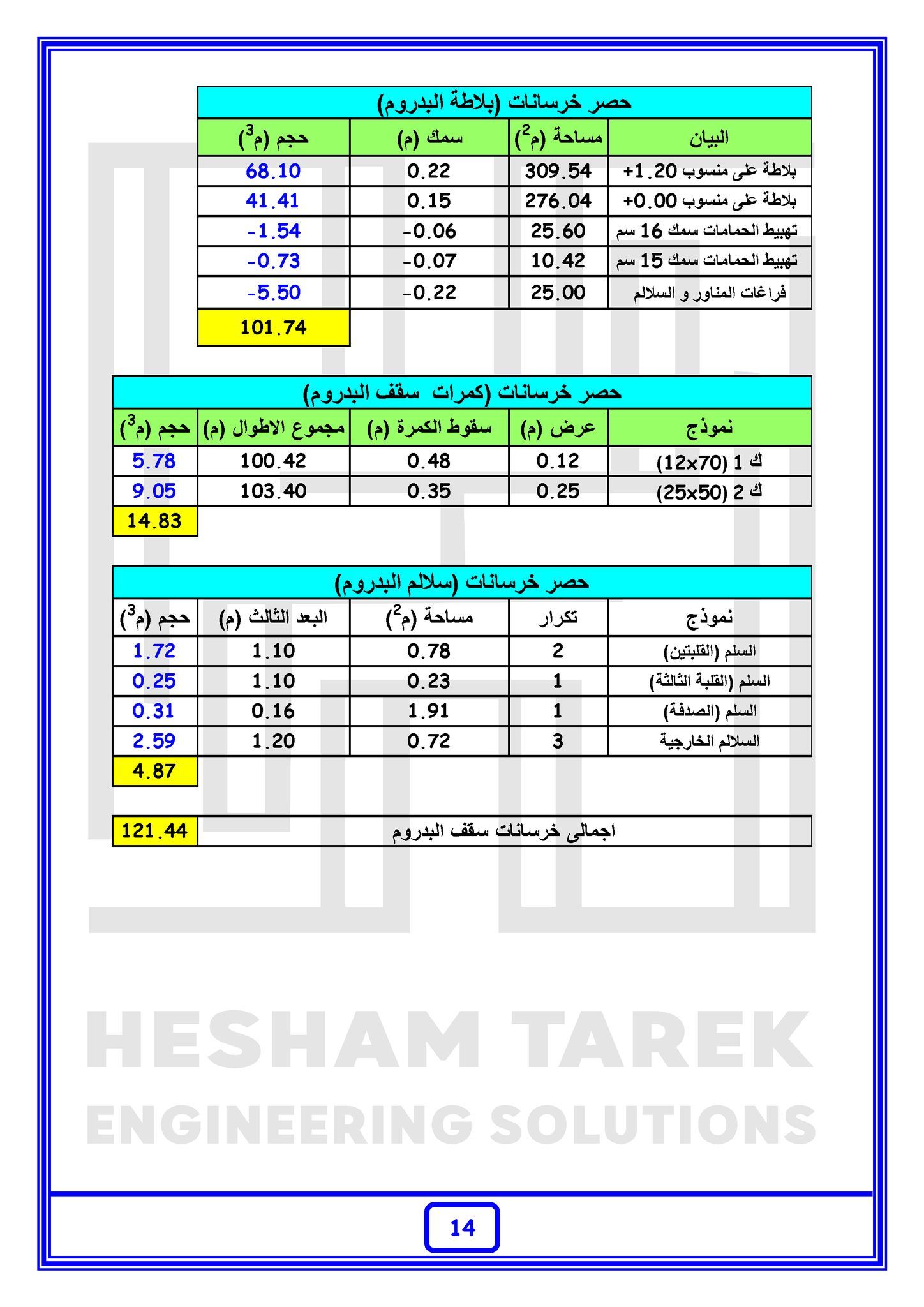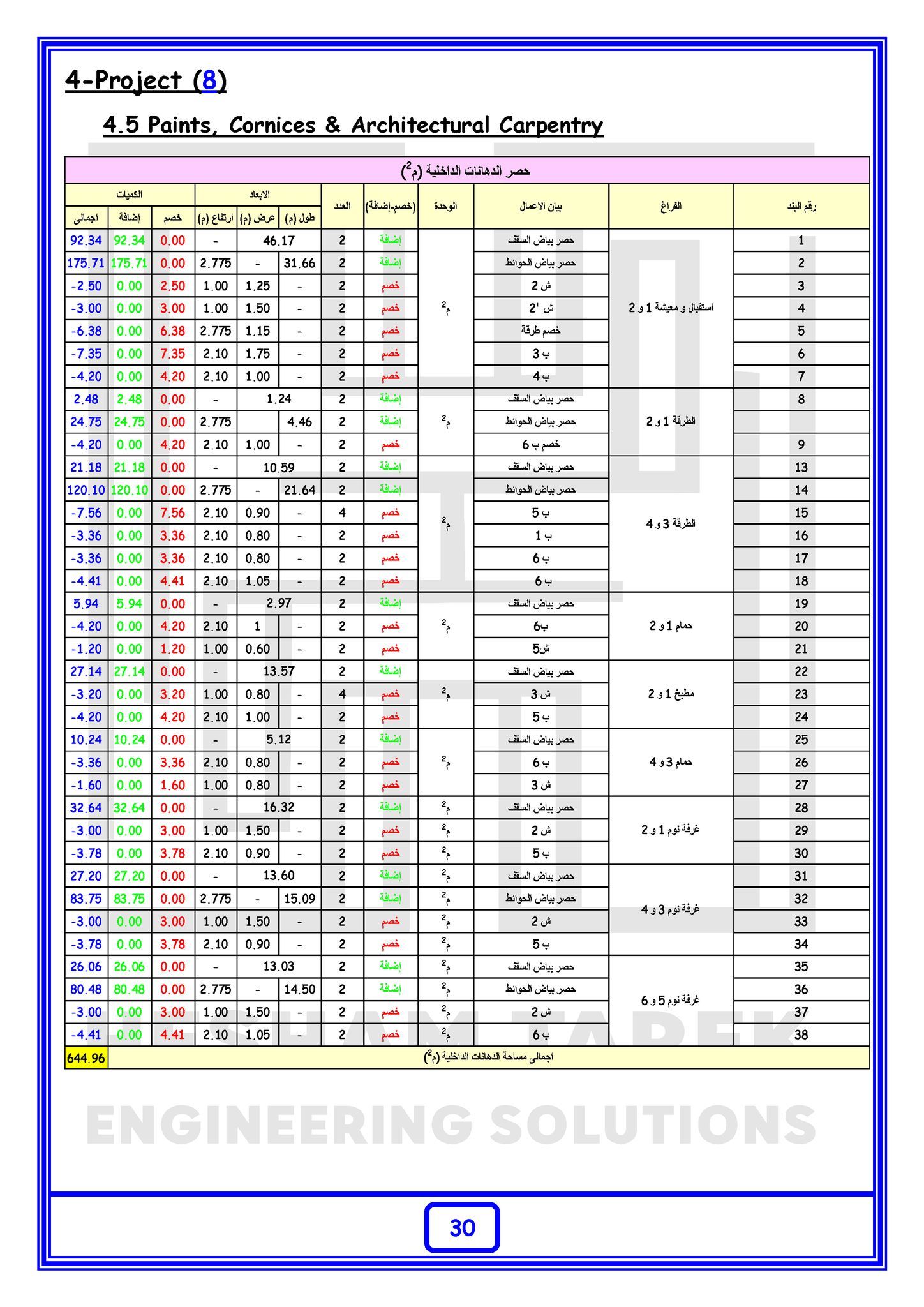 – عمل حصر لسقف سوليد سلاب مع شرح كيفية حصر البلاطات ذات السماكات المختلفة