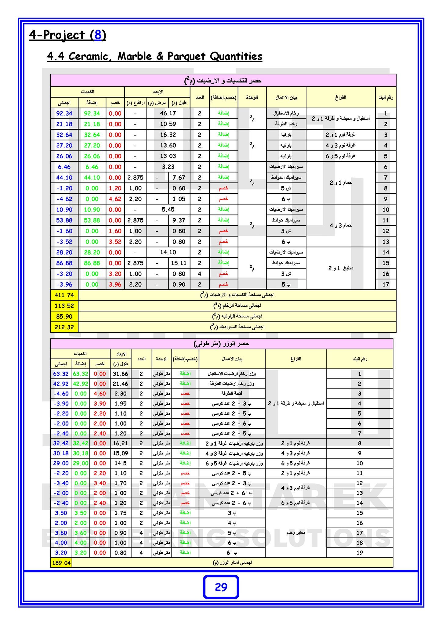 – شرح كيفية عمل حصر كميات لبنود التشطيابت ( المباني – المحارة – السيراميك – …….)