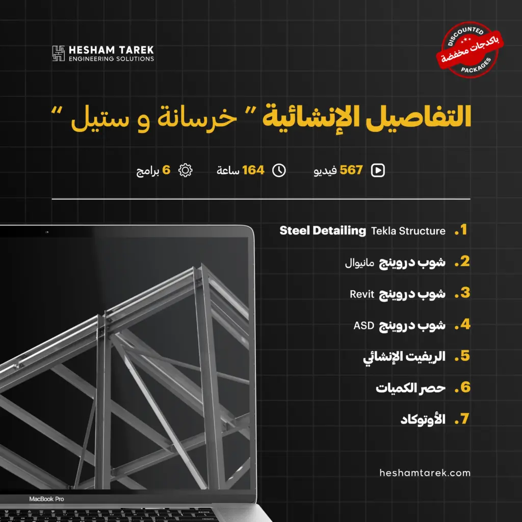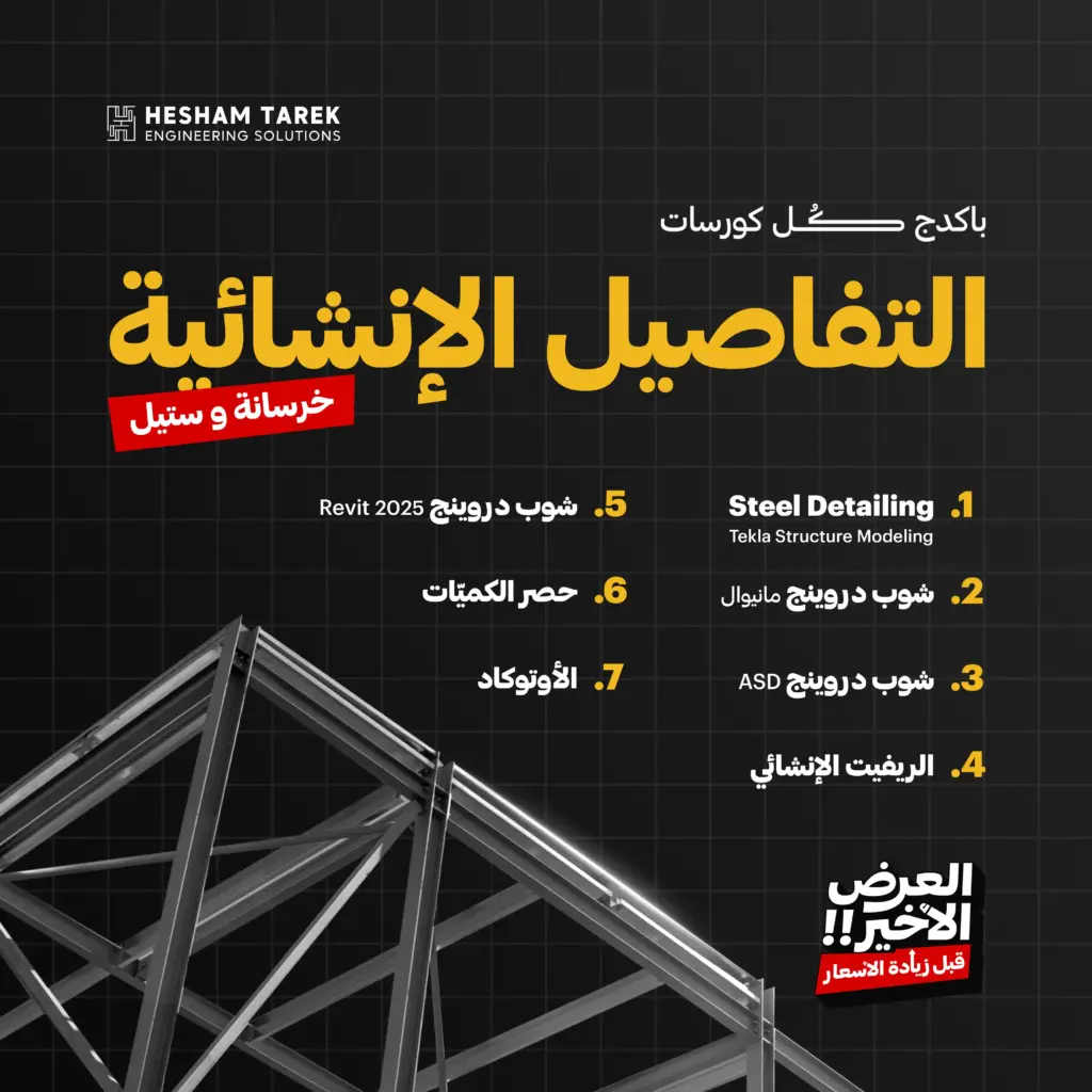 - هنتعلم إزاي نرسم كل العناصر الإنشائية بدقة عالية: أعمدة، كمرات، بلاطات، أساسات، وسلالم.