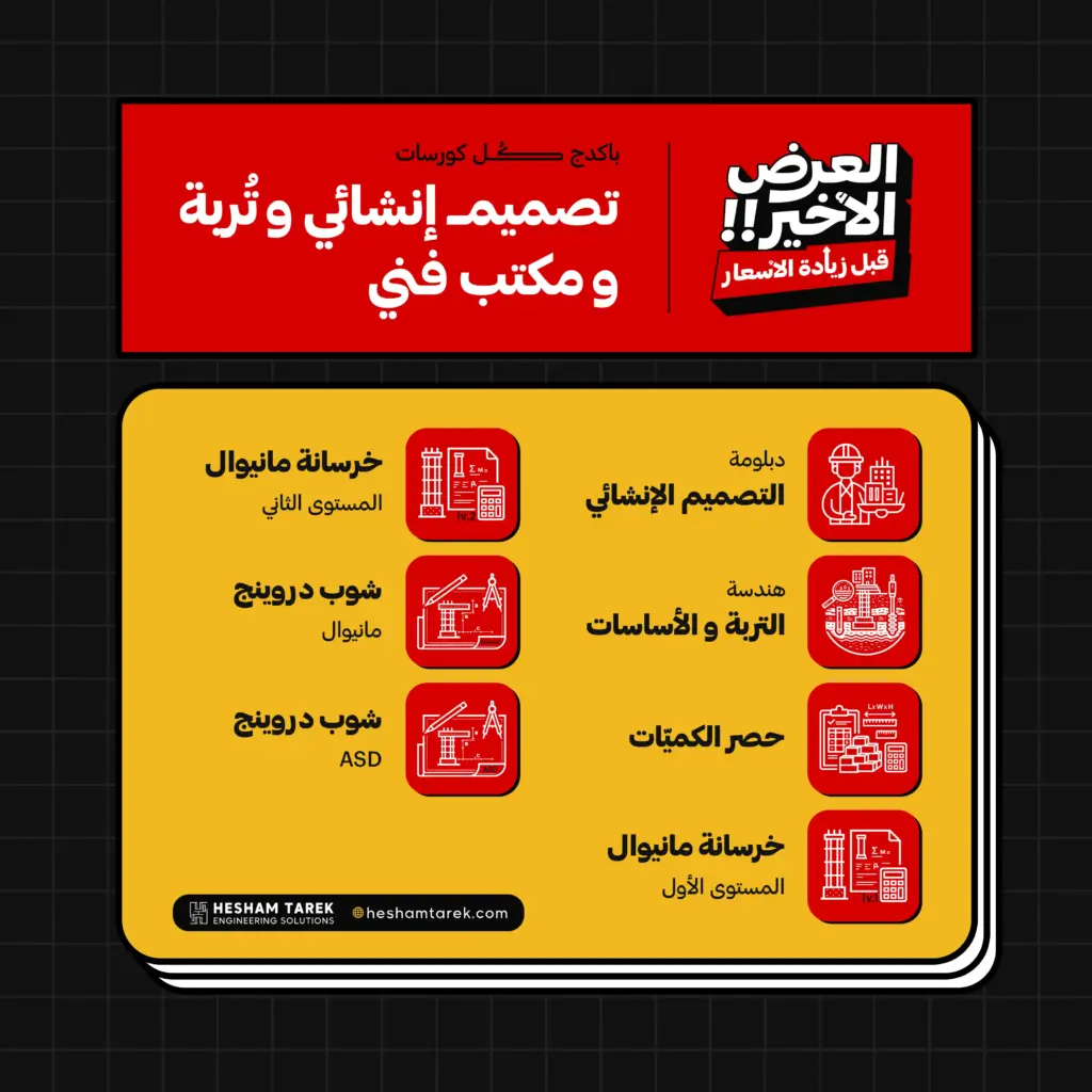 باكدج كل كورسات تصميم إنشائي و تربة و مكتب فني