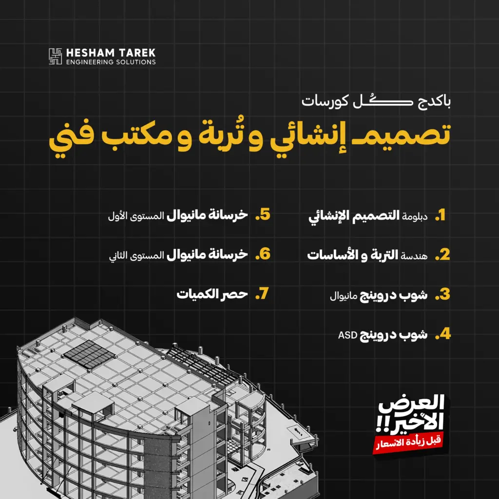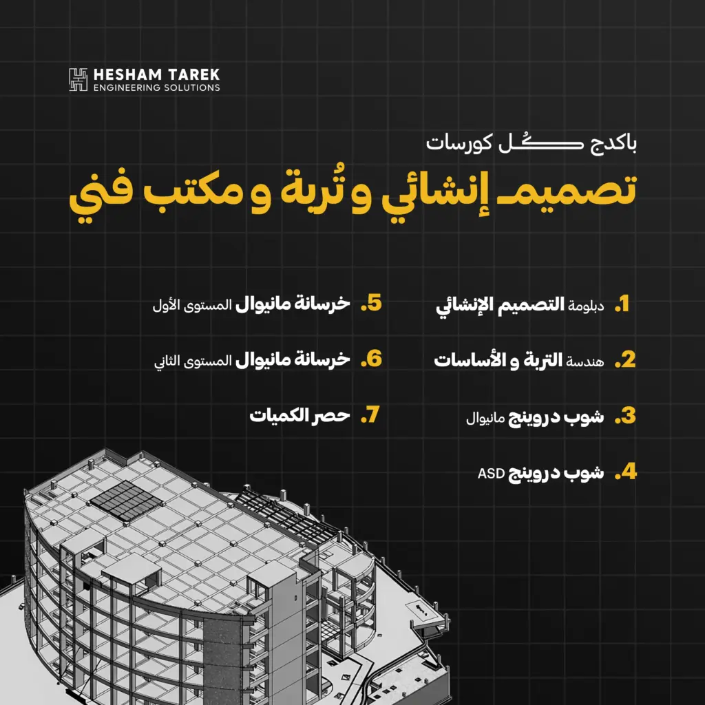 - في الكورس ده هتخرج منه مهندس تصميم إنشائي متعلم 6 برامج من الصفر + بتعرف تصمم 4 أنواع مشاريع مختلفة.