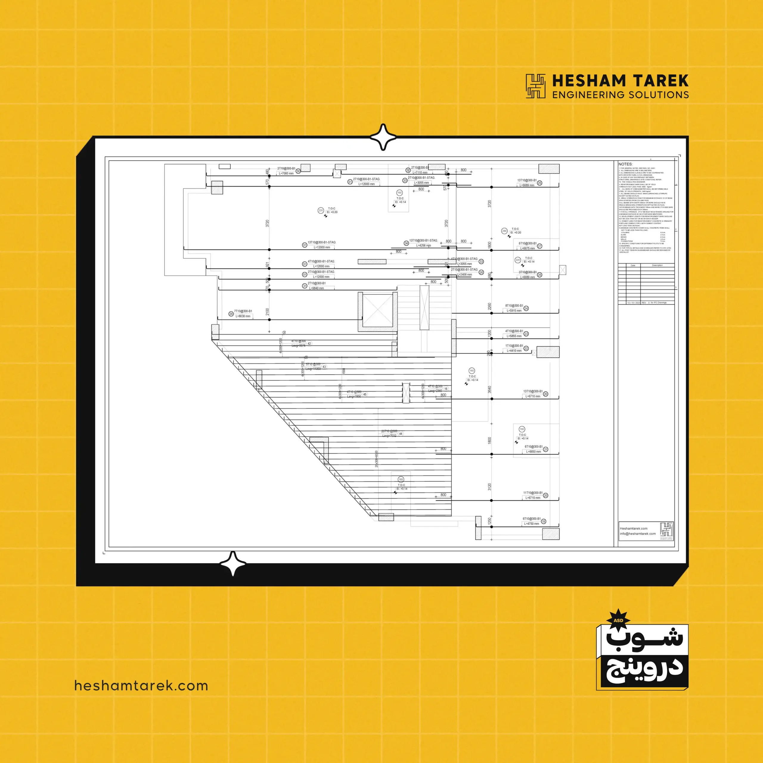- اللبشة المسلحة: التسليح، الفتحات/الأسانسير، فواصل الصب، والحالات الخاصة لكل حالة.