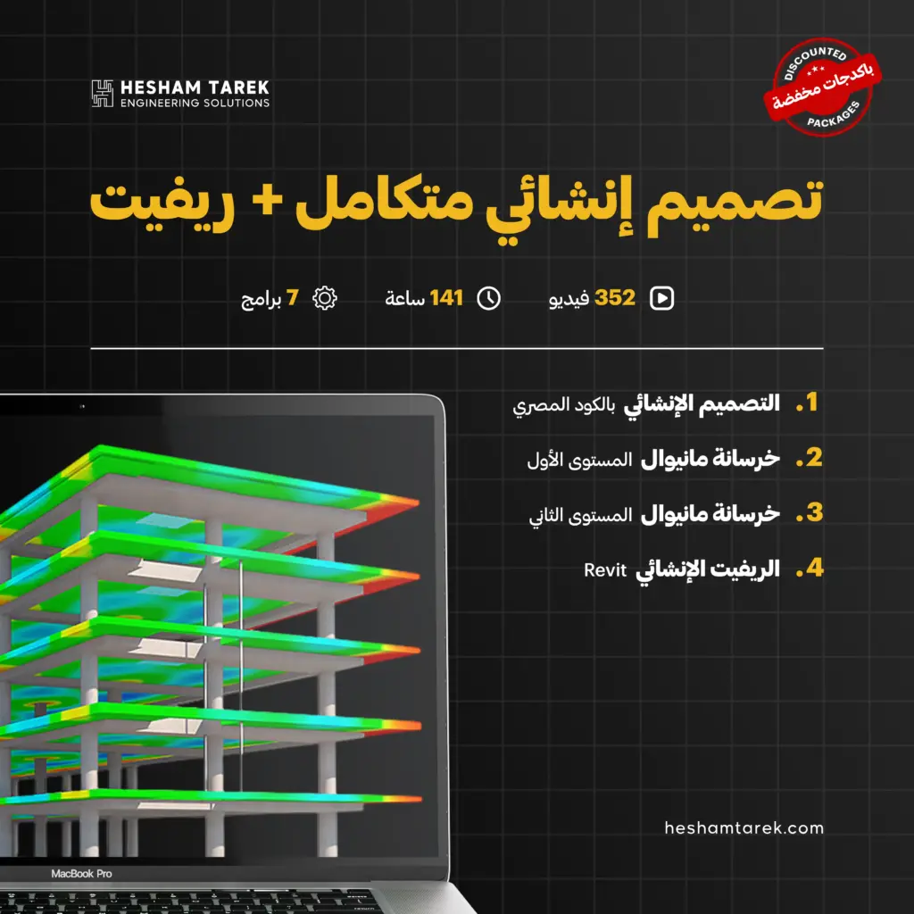 - في الكورس ده هتخرج منه مهندس تصميم إنشائي متعلم 6 برامج من الصفر + بتعرف تصمم 4 أنواع مشاريع مختلفة.