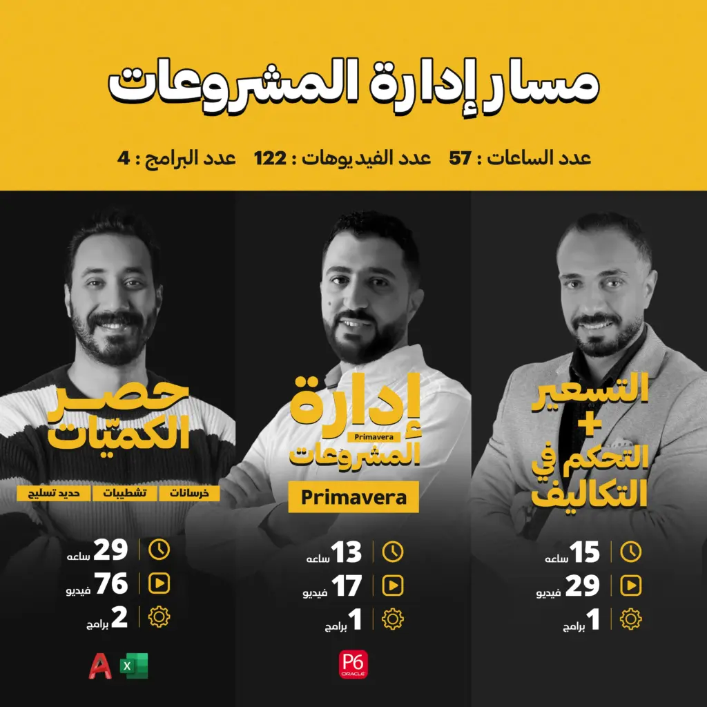 - في كورس “إدارة المشروعات و تعليم برنامج البريمافيرا” هنتعلم كيفية إنشاء برنامج زمني إحترافي لمشروع ضخم عن طريق برنامج البريمافيرا (تعليم البرنامج هيكون من البداية تماماً) .