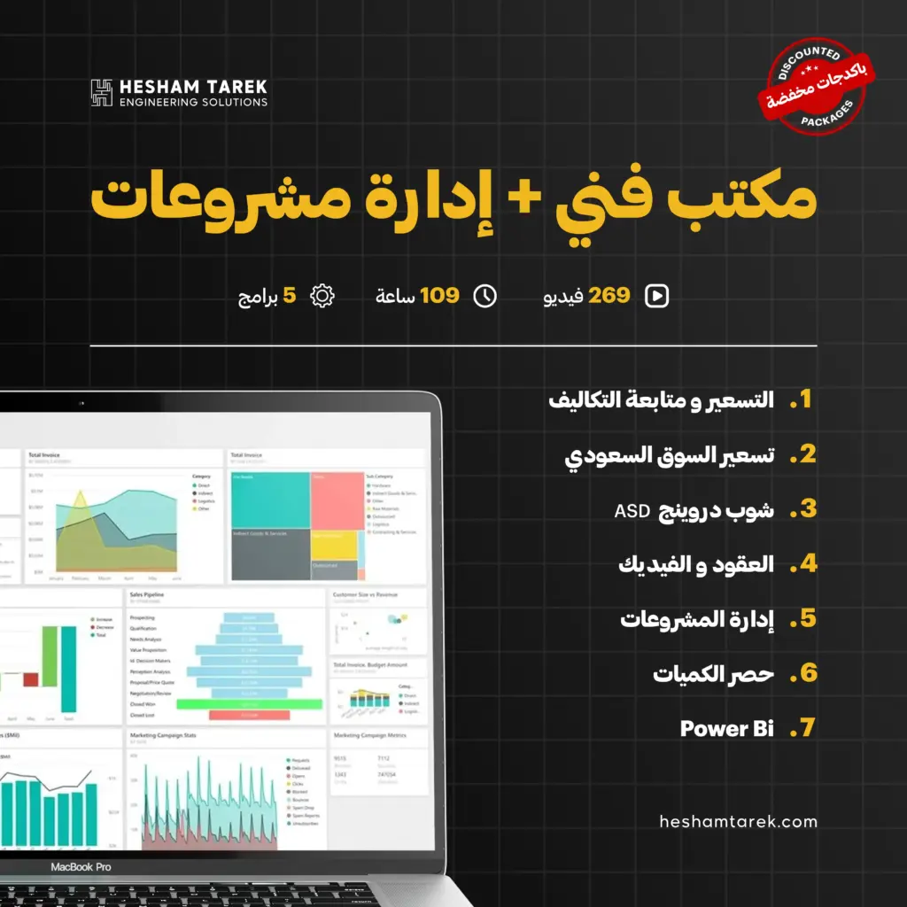- الكورس ده هو بقي العمود الرئيسي في مجال المكتب الفني، بنشرح بالتفصيل إزاي نعمل حصر كميات لأربع مشاريع مختلفة.