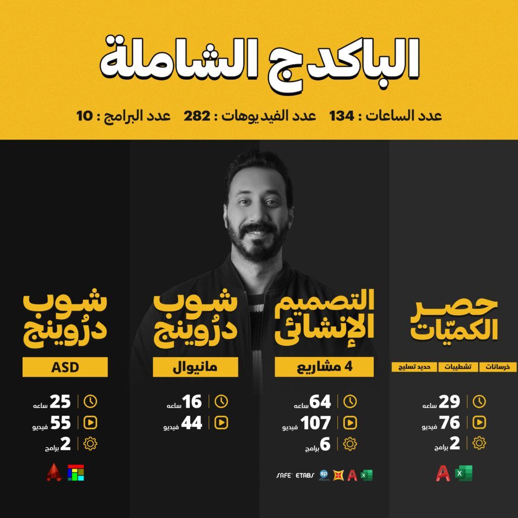 - في الكورس ده هتخرج منه مهندس تصميم إنشائي متعلم 6 برامج من الصفر + بتعرف تصمم 4 أنواع مشاريع مختلفة.