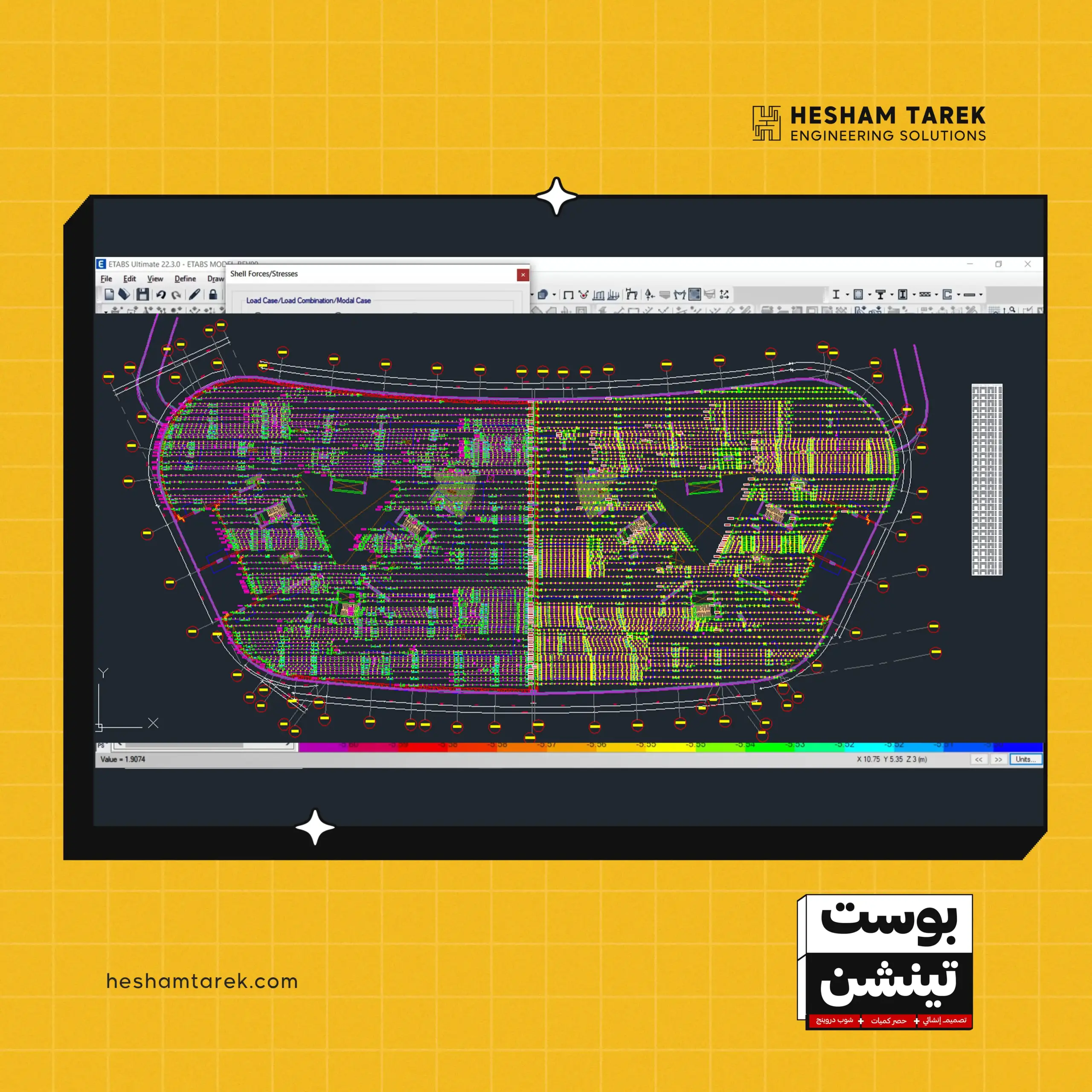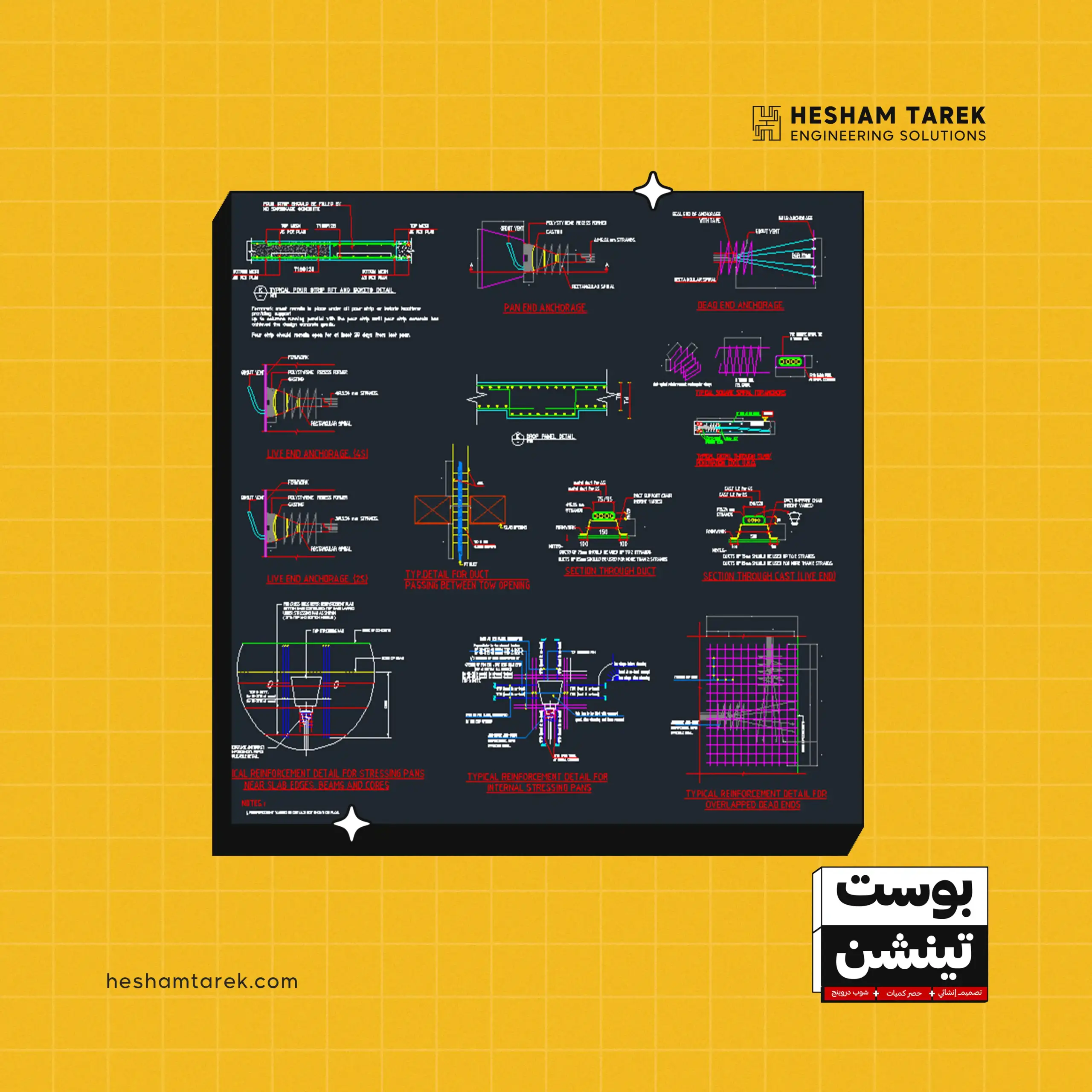 هنشيّك على الـ Stresses ونطلع الـ Shop Drawings بكل التفاصيل—مخططات مسارات الكابلات، تفاصيل الـ Anchorage، وأطوال وكمّيات كل Tendonوغيرها.