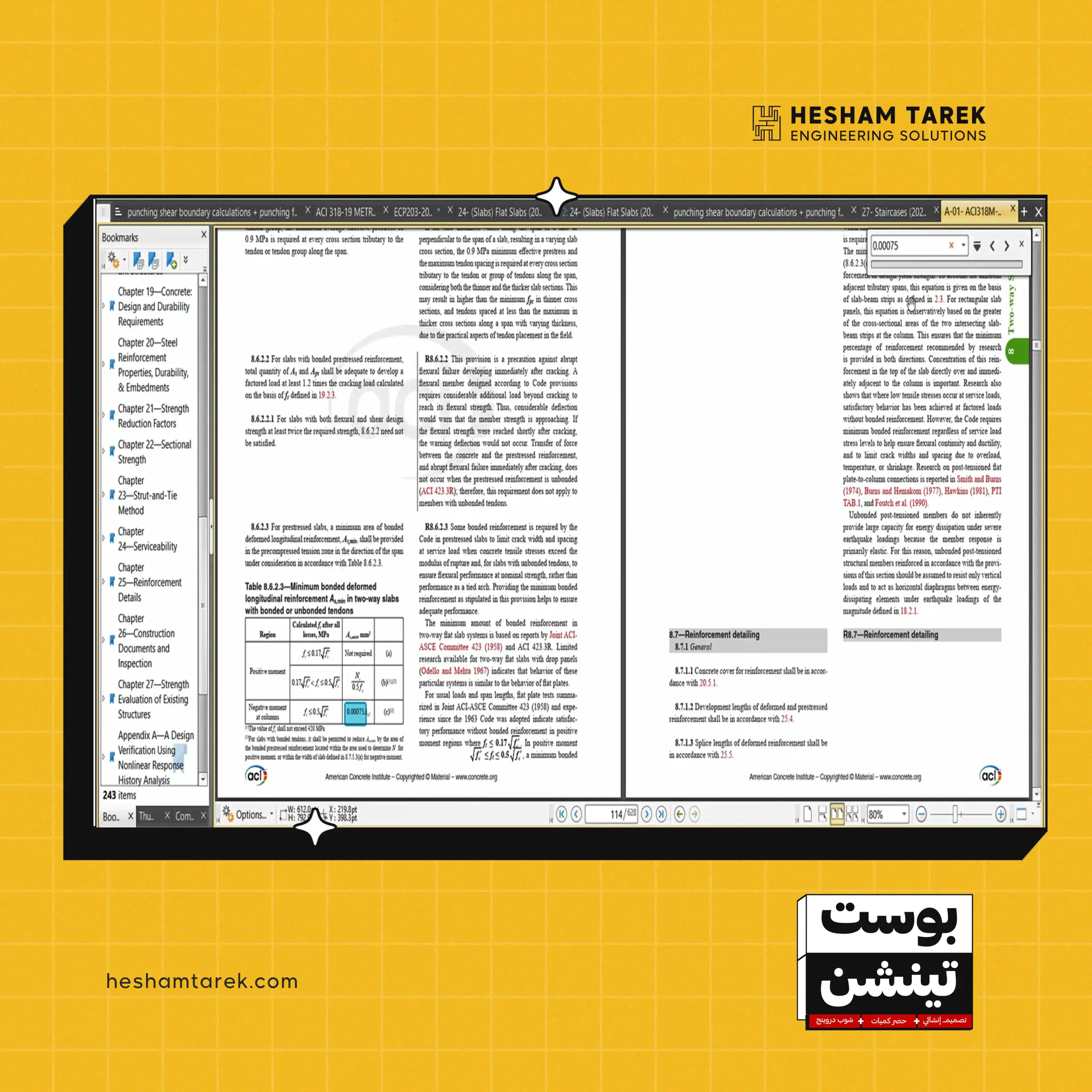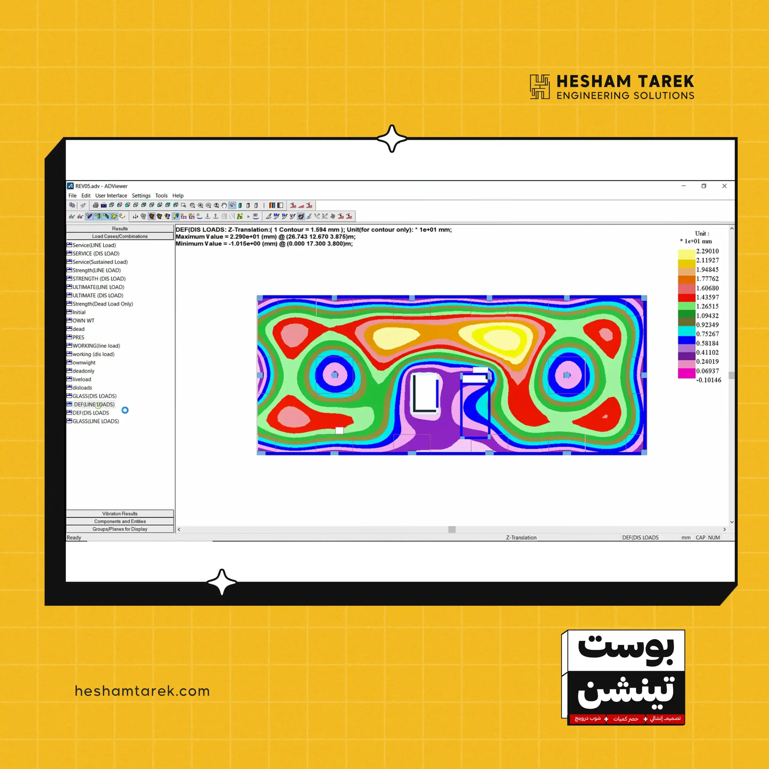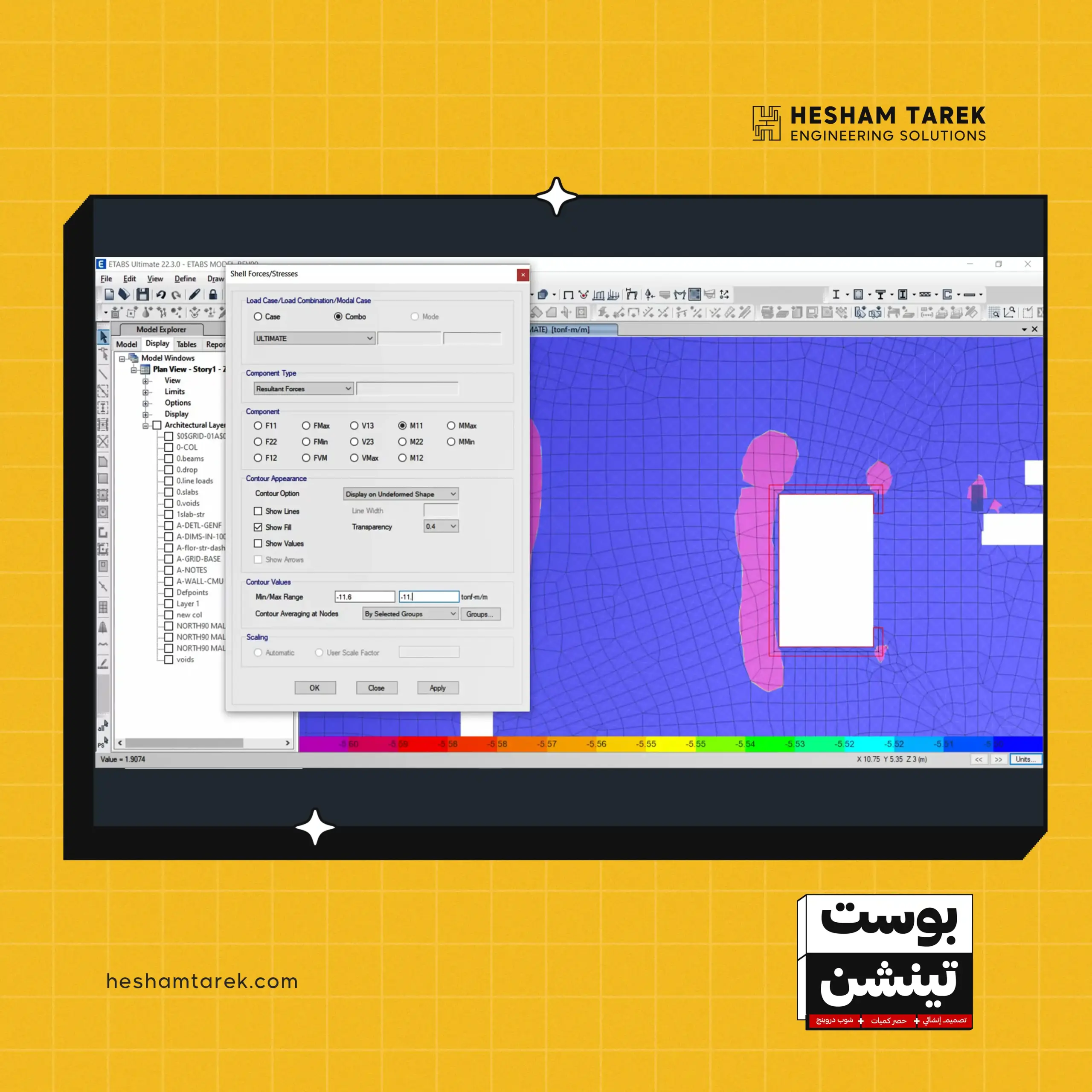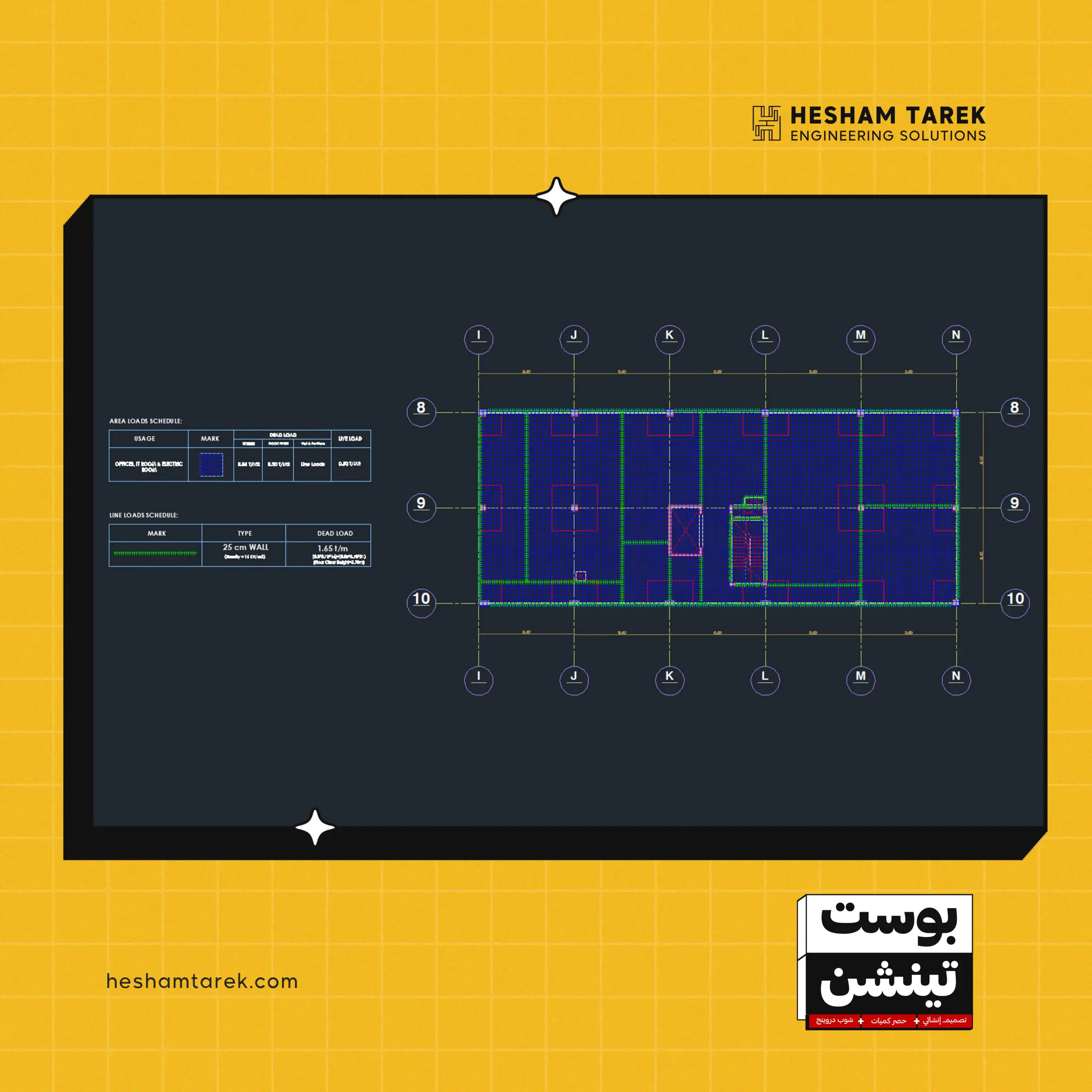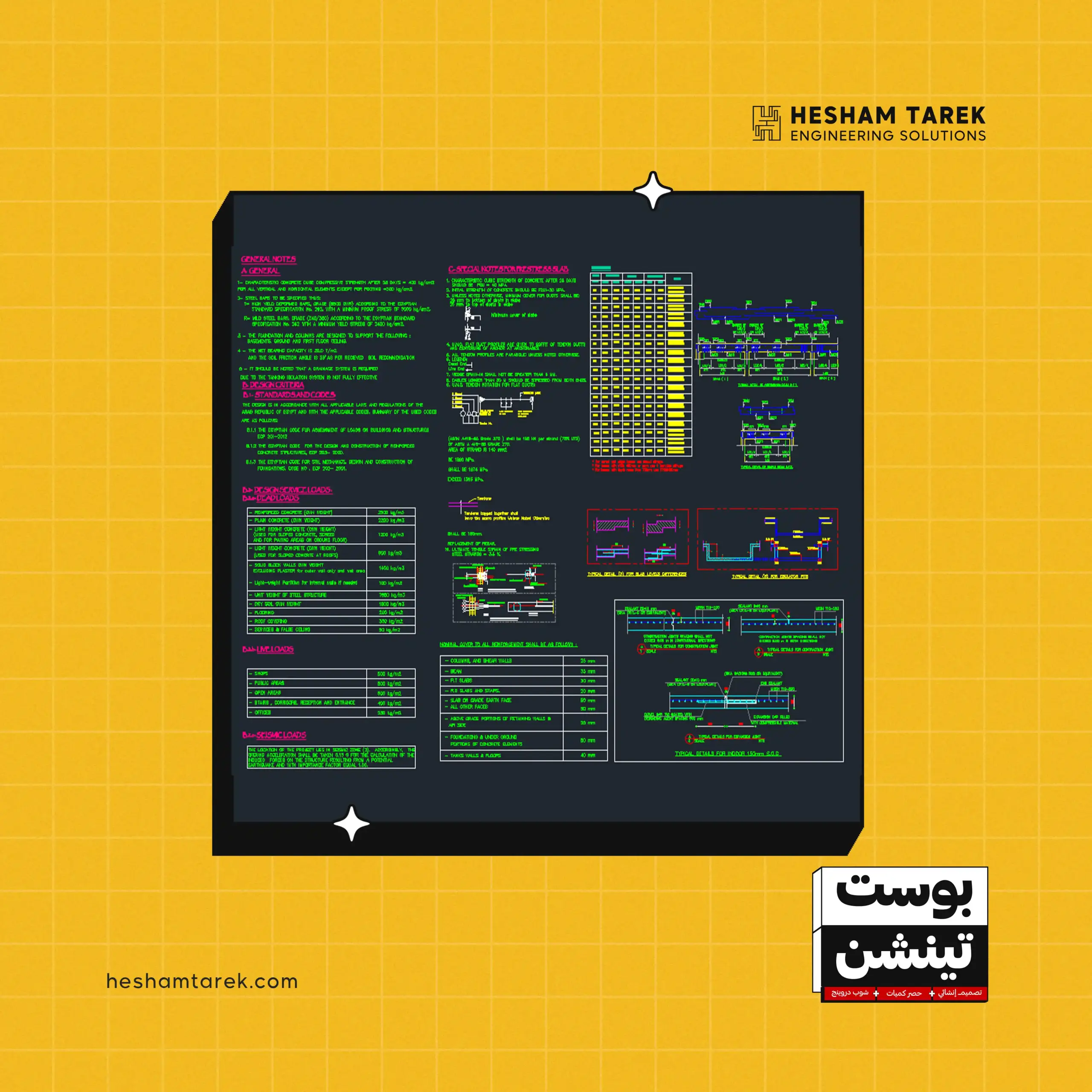 كمان هنراجع قيود الـ Deflection طبقًا لمتطلبات الأكواد، وهنشوف إزاي نعمل Load Combinations الخاصة بالترخيم. هنطبّق كل الـ Checks عمليًا على الموديل، ولما نتأكد إن كل الـ Checks مظبوطة والنتائج تمام، هنعمل export الكابلات على الأوتوكاد، ونجهّز Calculation Sheet بشكل منظم واحترافي وبأعلى سرعة وكفاءة.