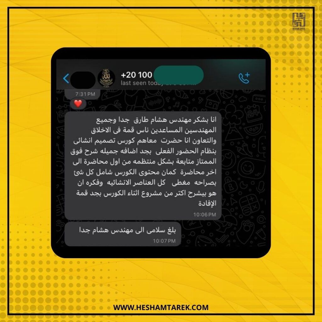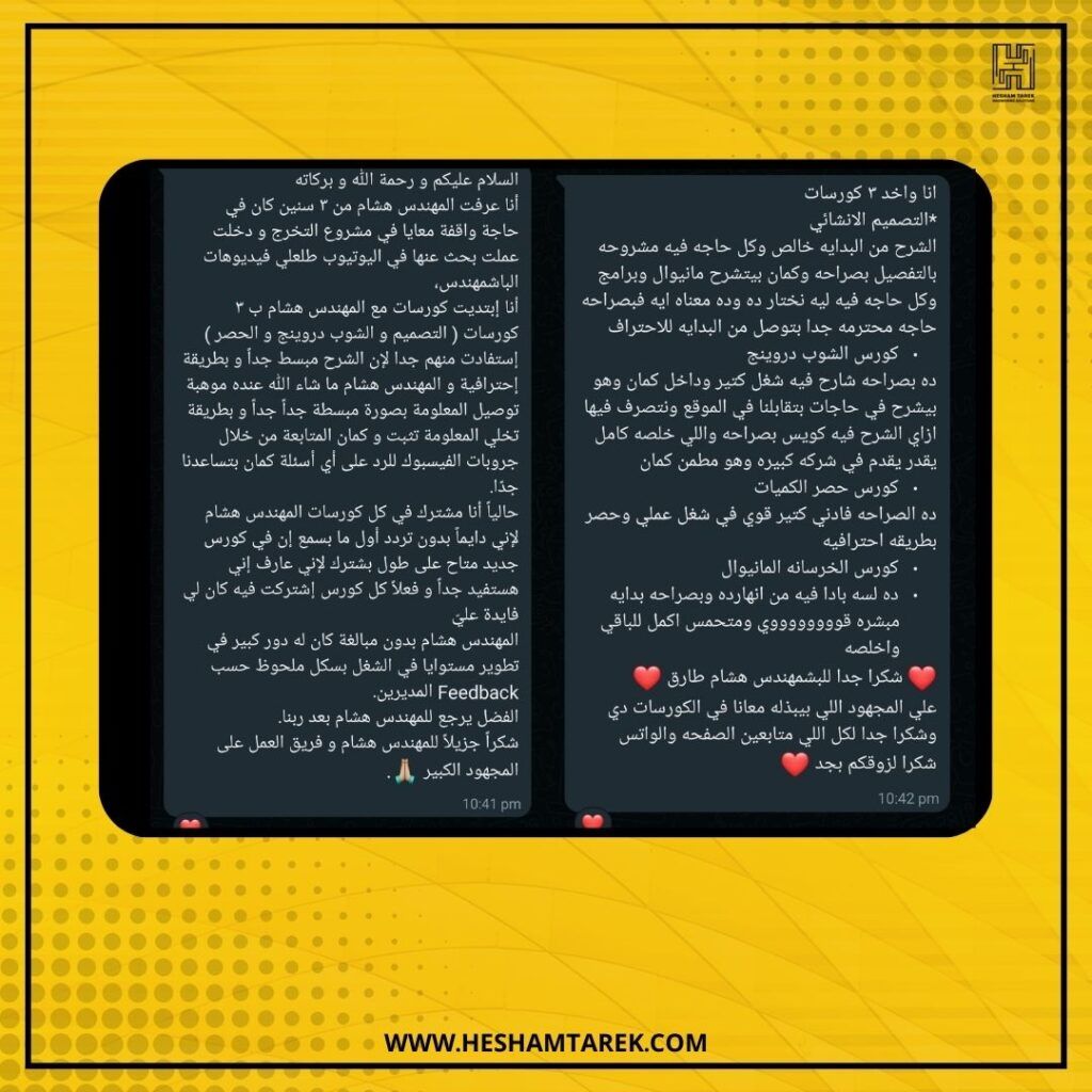 في نهاية إجتيازك للكورس هتحصل علي شهادة معتمدة من مكتبنا Hesham Tarek Engineering Solutions للخدمات و الإستشارات الهندسية.