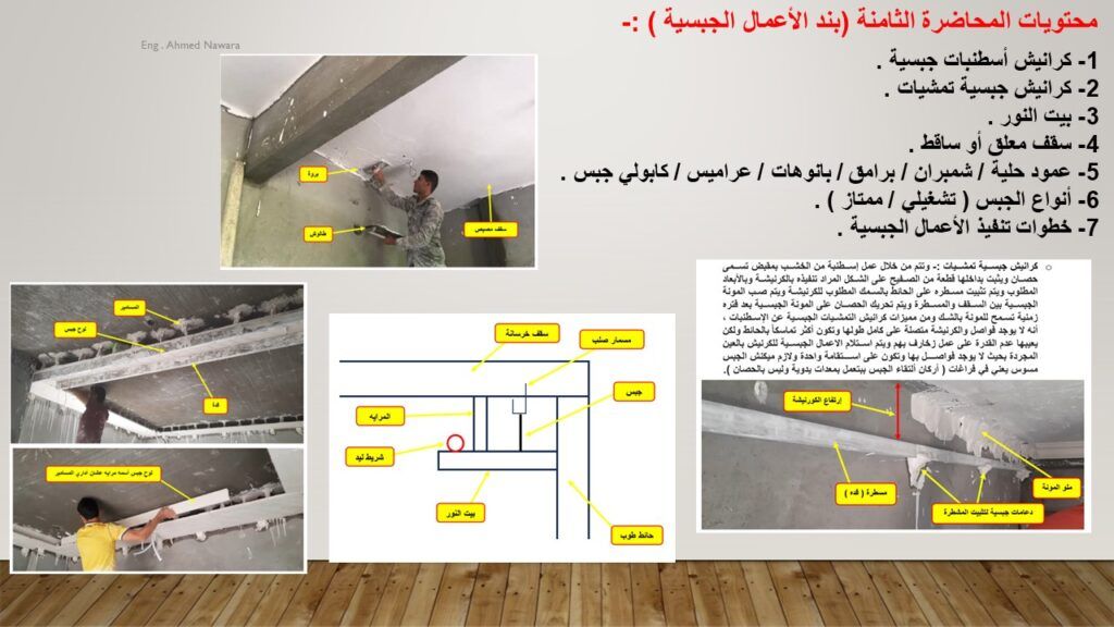 - أعمال الجيبسوم بورد: تنفيذ واستلام الجدران والأسقف.