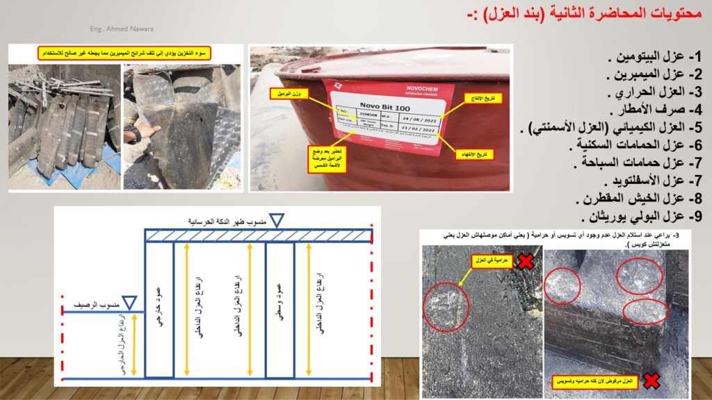 - العزل المائي والحراري: طرق التنفيذ والاستلام السليم.