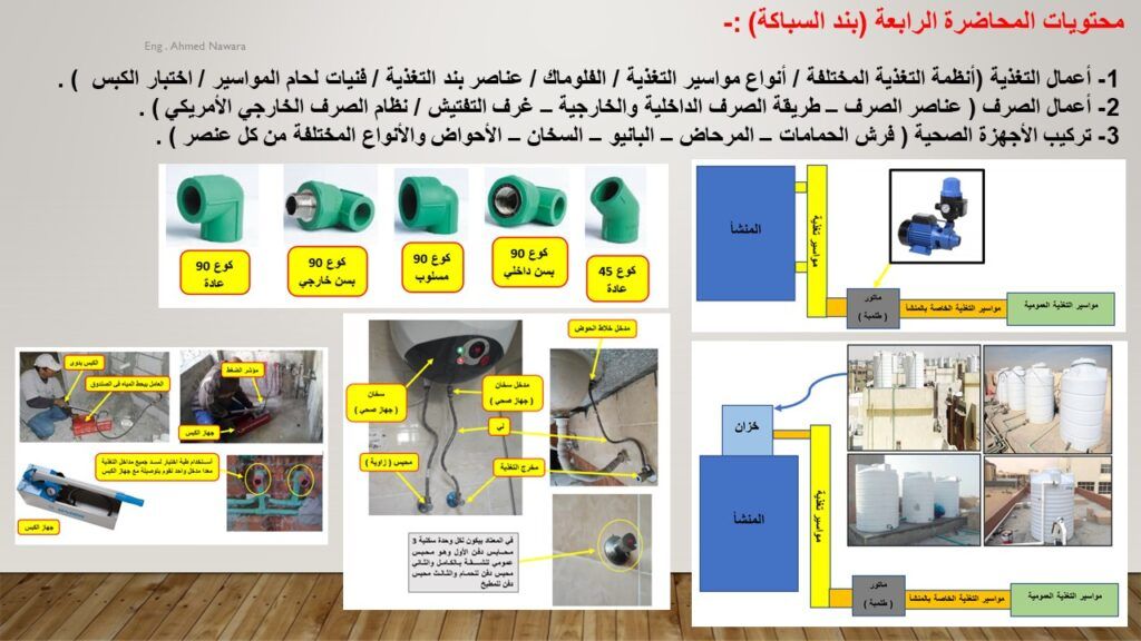 - أعمال السباكة: صرف وتغذية من التأسيس حتى التشطيب.