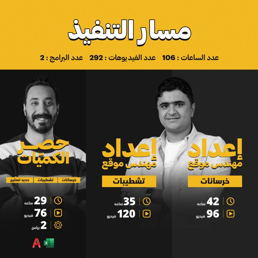 - الكورس ده هو بقي العمود الرئيسي في مجال المكتب الفني، بنشرح بالتفصيل إزاي نعمل حصر كميات لأربع مشاريع مختلفة.