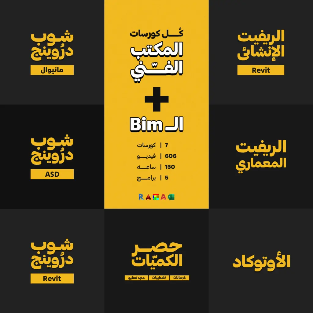 - هتتعلم إعداد المشروع، ضبط الليفلز والمناسيب، وإنشاء العناصر الأساسية زي الحوائط، الأبواب، الشبابيك، الأسقف، الأرضيات، والسلالم.