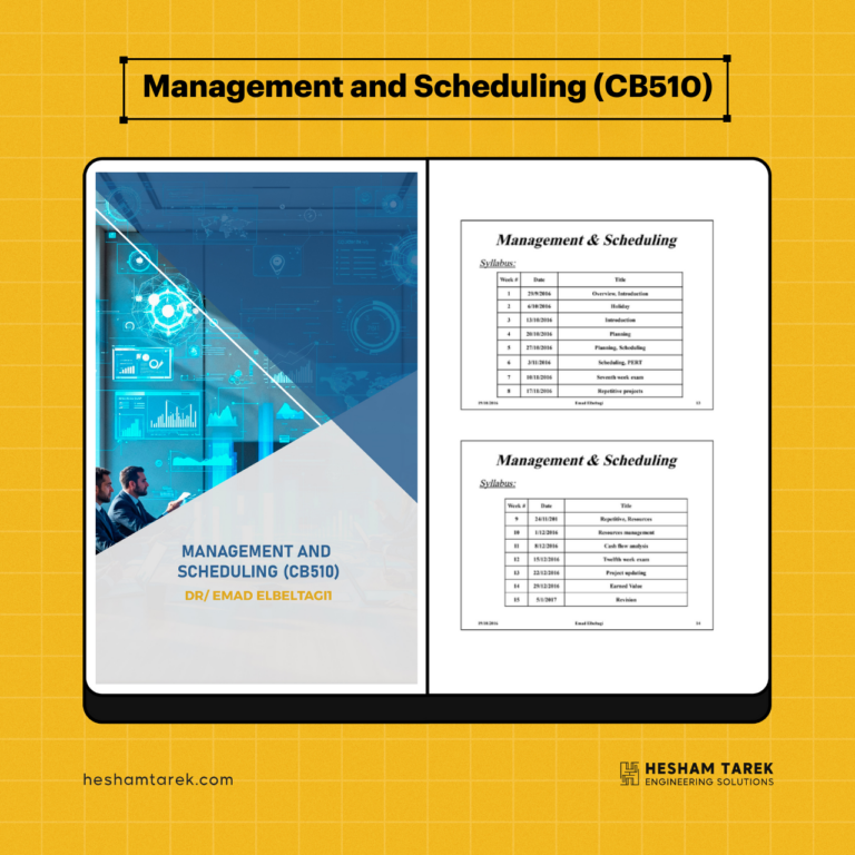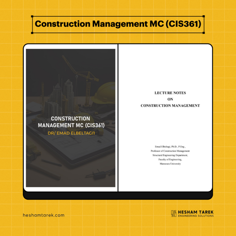 كتاب Construction Management 1 (CB516) للدكتور عماد البلتاجي بيقدّم محتوى منظم ومتكامل لفهم إدارة المشروعات الإنشائية من زاوية التخطيط، الجدولة،…