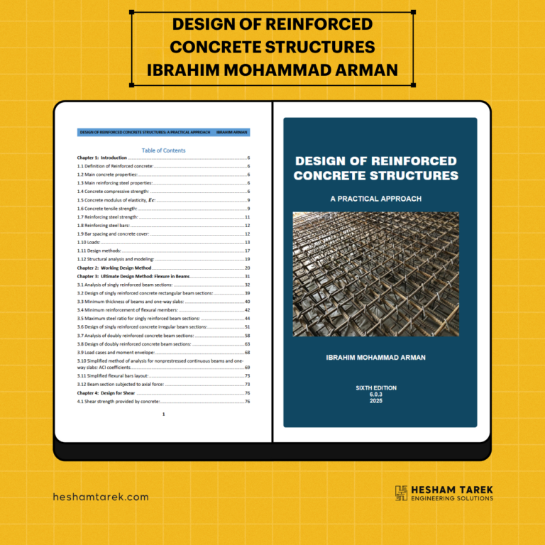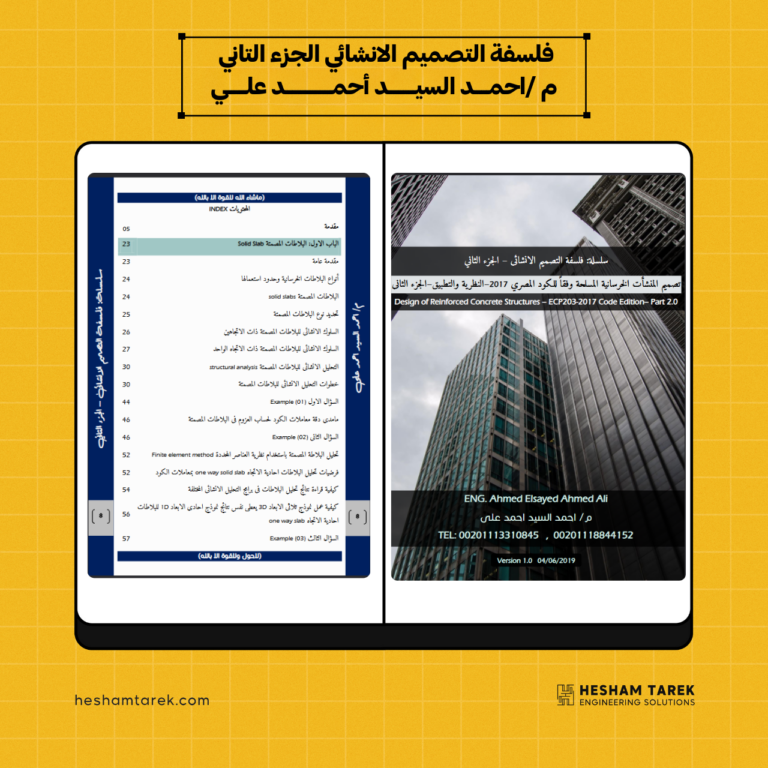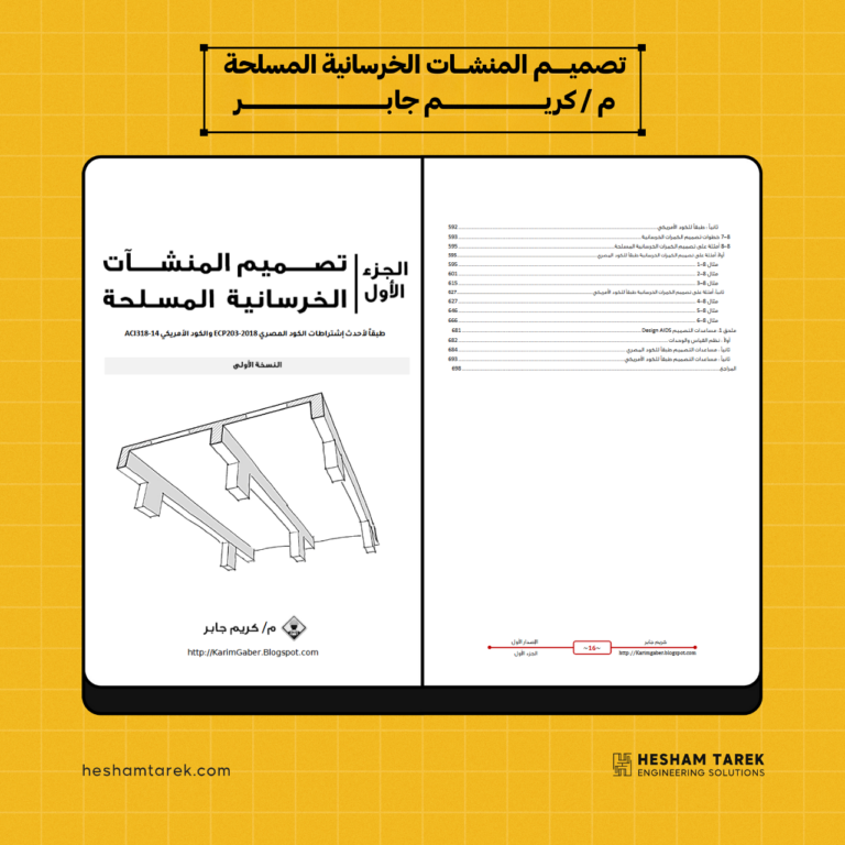 كتاب تصميم المنشآت الخرسانية المسلحة – م. كريم جابر الجزء الاول يحتوي علي الاتي : الفصل الأول – مقدمة في…