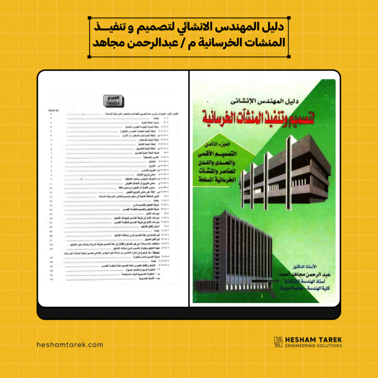 كتاب دليل المهندس الانشائي لتصميم و تنفيذ المنشات الخرسانية م عبدالرحمن مجاهد و يحتوي الكتاب علي الاتي : الفصل الاول…