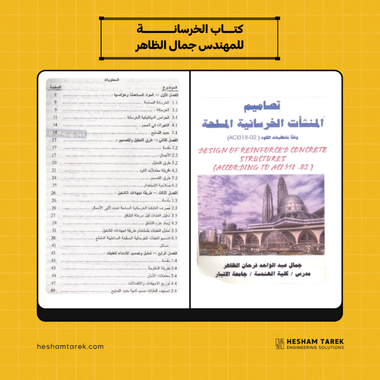 كتاب تصميم المنشآت الخرسانية – د. محمد هلال و يحتوي علي الاتي : الفصل الأول: مقدمة في الخرسانة المسلحة الفصل…