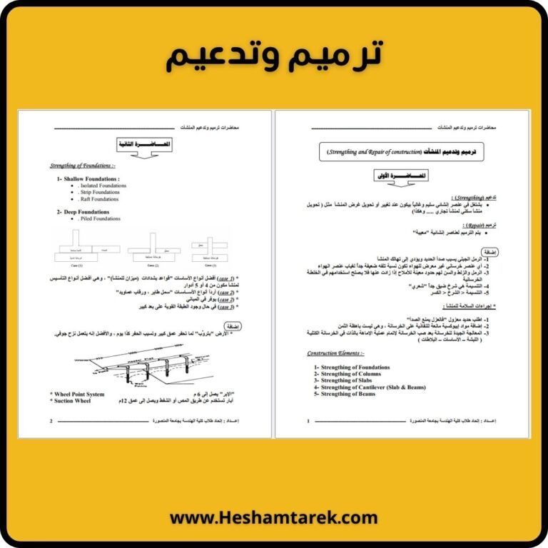 محاضرات في ترميم وتدعيم المنشئات الخرسانية.