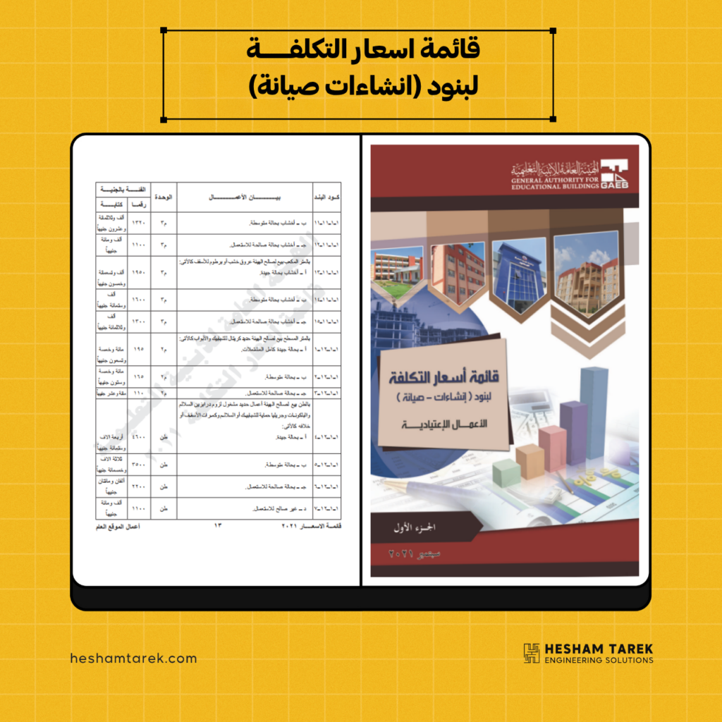 قائمة اسعار التكلفة لبنود انشاءات صيانة