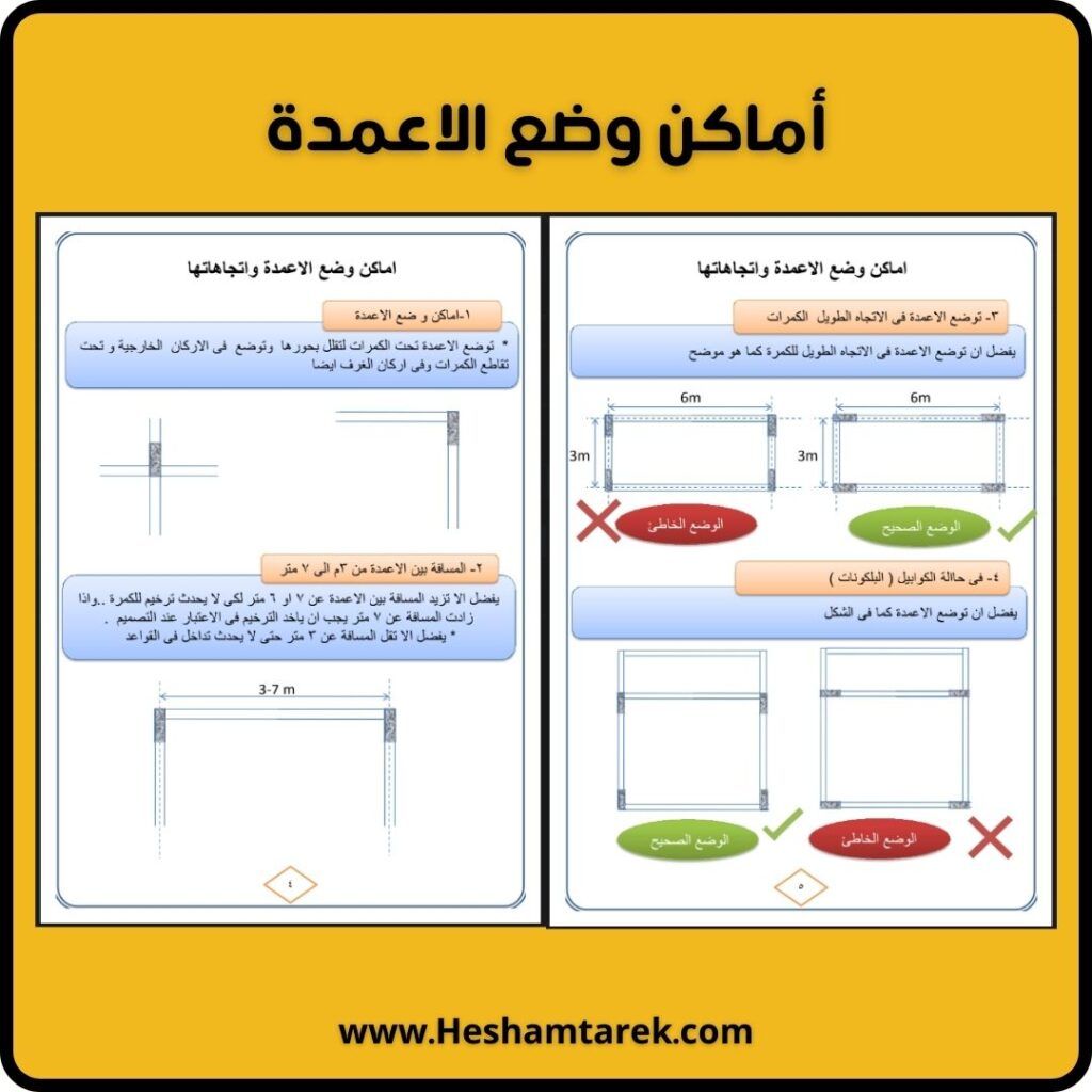 - التوجيه الفني: يجب أن يتم تحديد أماكن الأعمدة بناءً على الأدلة الفنية والهندسية، مع الاهتمام بتوجيه الاستشارات الفنية اللازمة لضمان الأداء المثلى للهيكل.