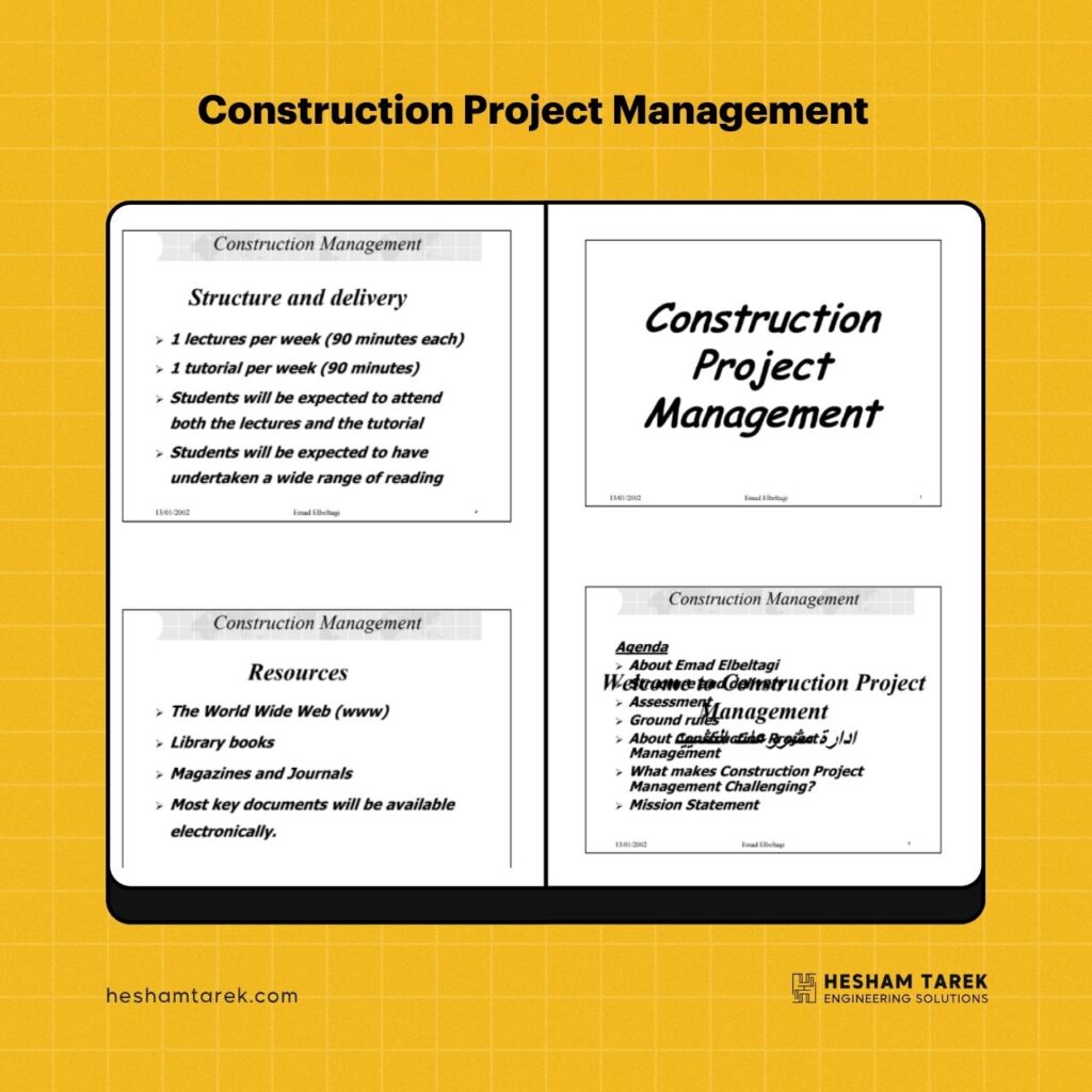 كتـــــاب Construction Project Management – ادارة المشروعـــــــات ل دكتور عمـــاد البلتاجي الكتاب يحتوي علي437 صفحة و يحتوي علي الأتــــــــــي :