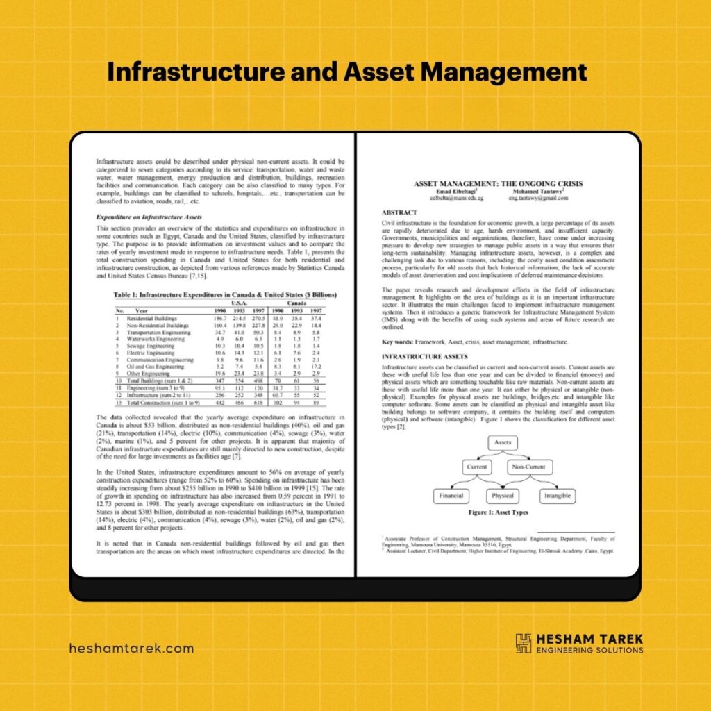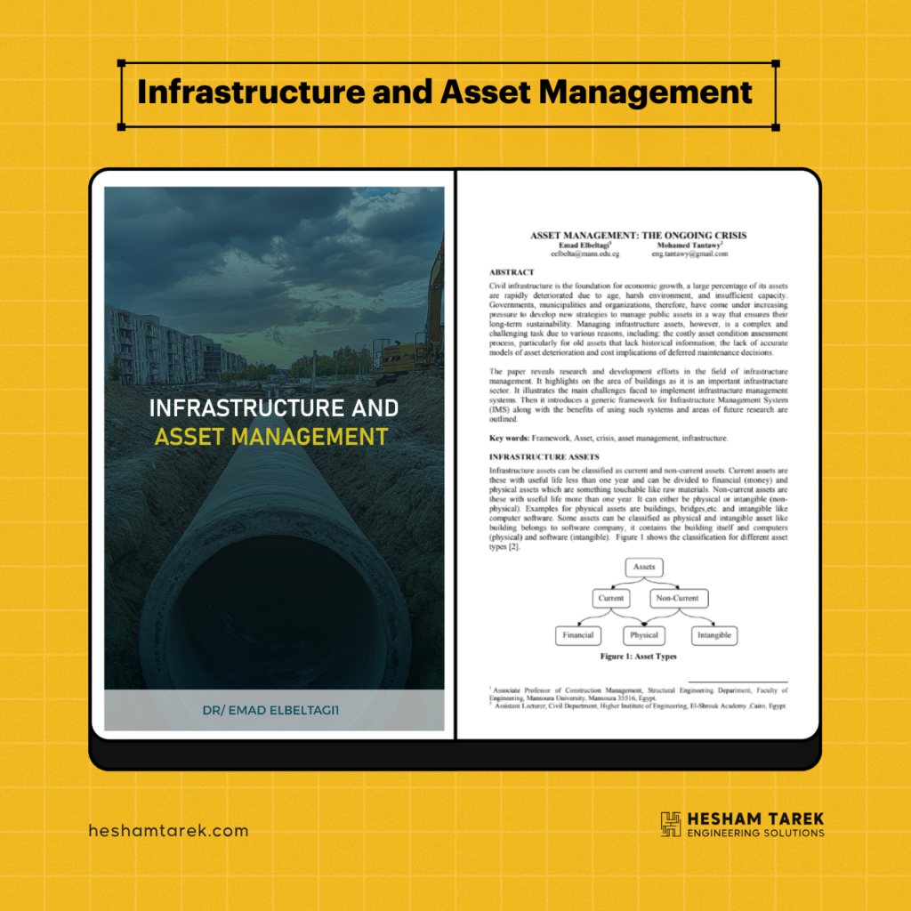 كتاب Infrastructure and Asset Management بيقدّم فهم عملي لإدارة البنية التحتية والأصول الهندسية على المدى الطويل، بداية من التخطيط واتخاذ القرار، مرورًا بالتشغيل والصيانة، ووصولًا إلى التجديد أو الإحلال.