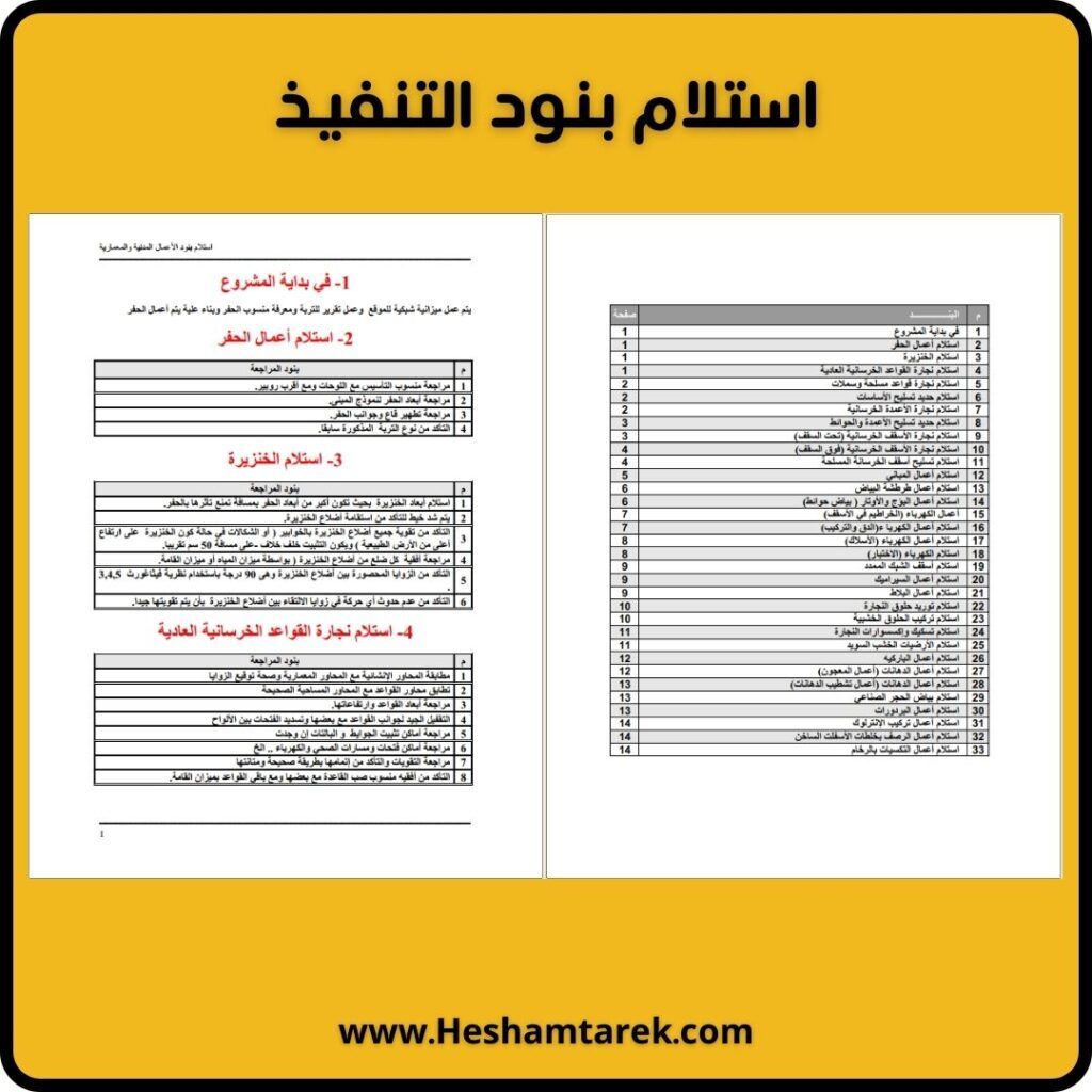 هذه الخطوات تمثل عملية عامة لاستلام بنود تنفيذ المنشئات الخرسانية، ويمكن تعديلها وفقًا لمتطلبات وظروف كل مشروع بشكل فردي.