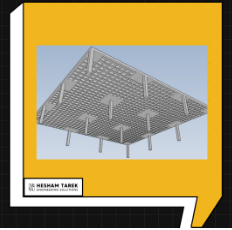 3️⃣ كيف تقاوم الـ Punching Shear بدون تيجان؟إذا رفض المعماري وجود (Drop Panel) أو (Column Capital) لشكل جمالي، نلجأ إلى:Steel Studs: مسامير حديدية برؤوس توضع حول العمود.Stirrups: كانات مكثفة حول رقبة العمود داخل البلاطة.Bent-up Bars: تكسيح الحديد عند العمود لمقاومة قوى القص.