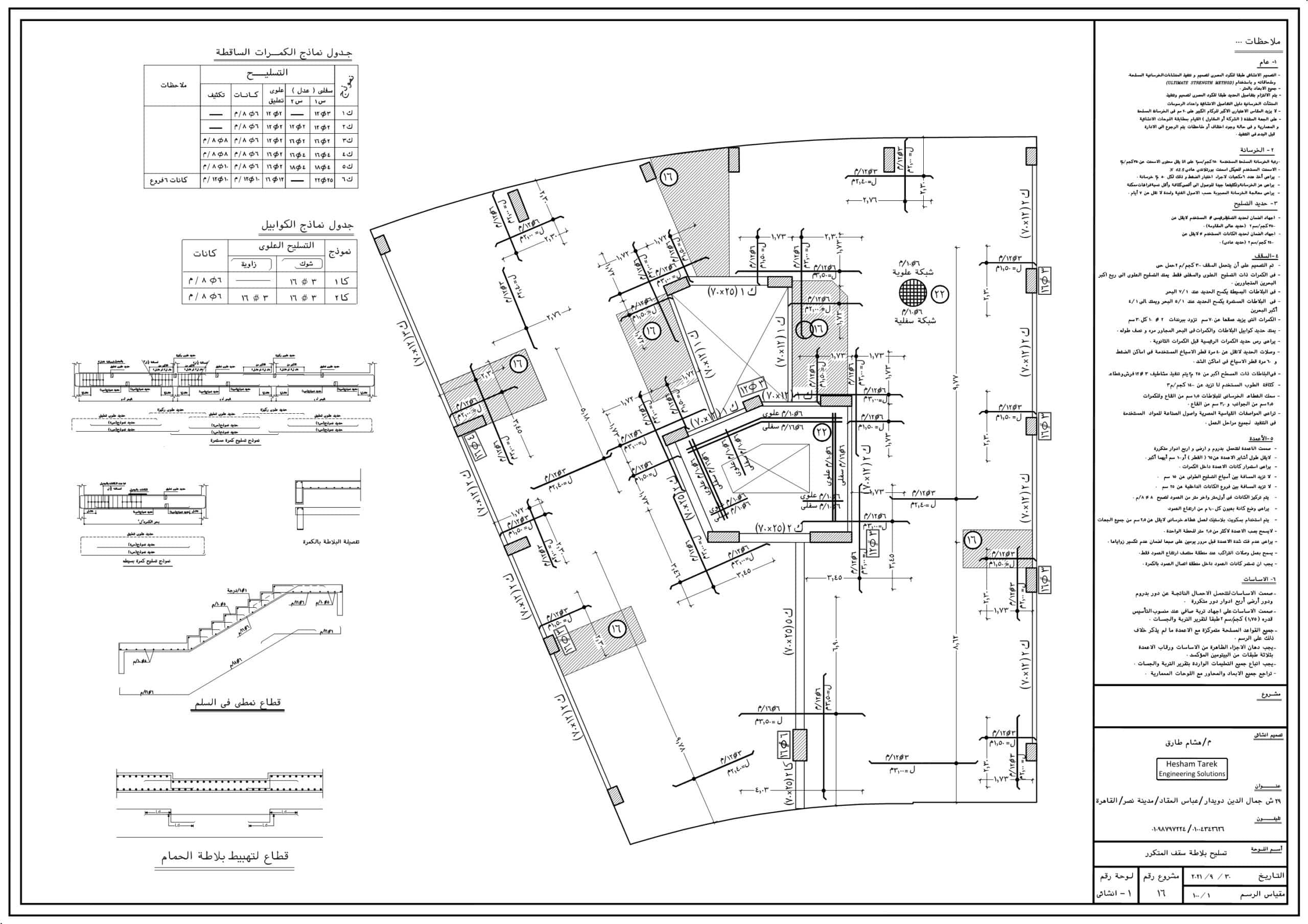 مكتب المهندس هشام طارق للخدمات الهندسية متخصصون في أعمال التصميم الإنشائي و الشوب دريونج و إعداد قوائم حصر الكميات للتواصل مع قسم التصميم الإنشائي 201004342626
