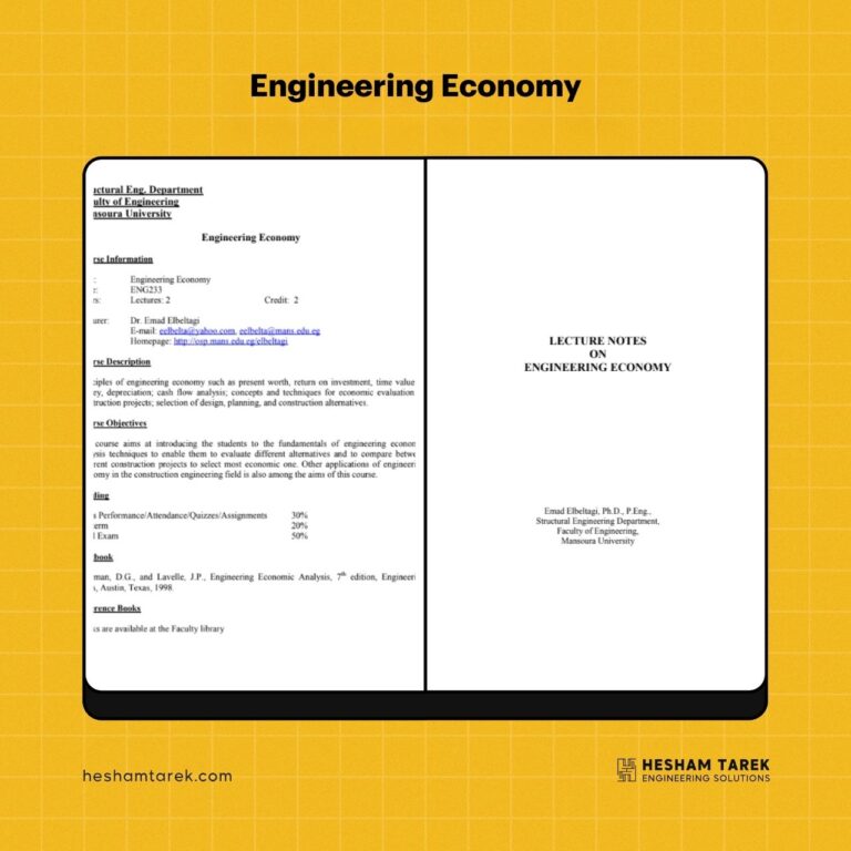 كتاب Engineering Economy للدكتور عماد البلتاجي بيركّز على التحليل الاقتصادي للقرارات الهندسية، وبيساعد المهندس يفهم إزاي يقيّم البدائل المختلفة من…